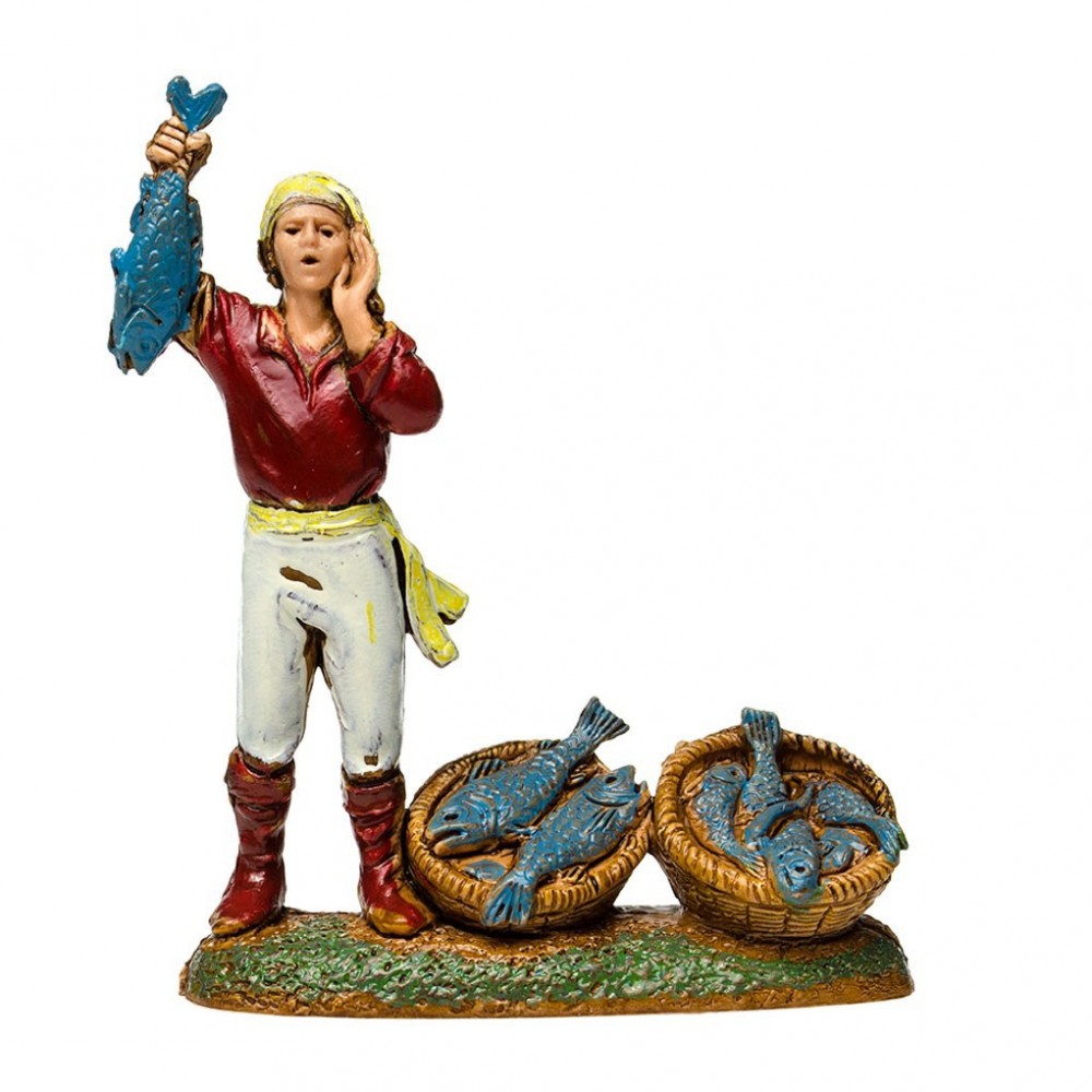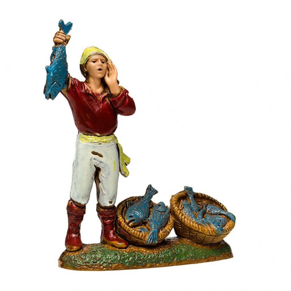 Statuina del Pescivendolo con Cesti di Pesce per il Presepe 6 cm.