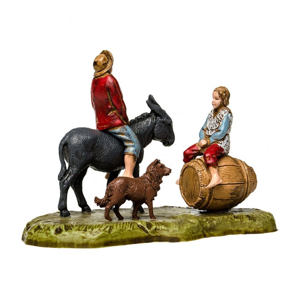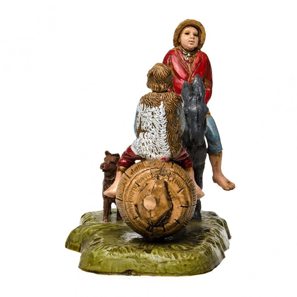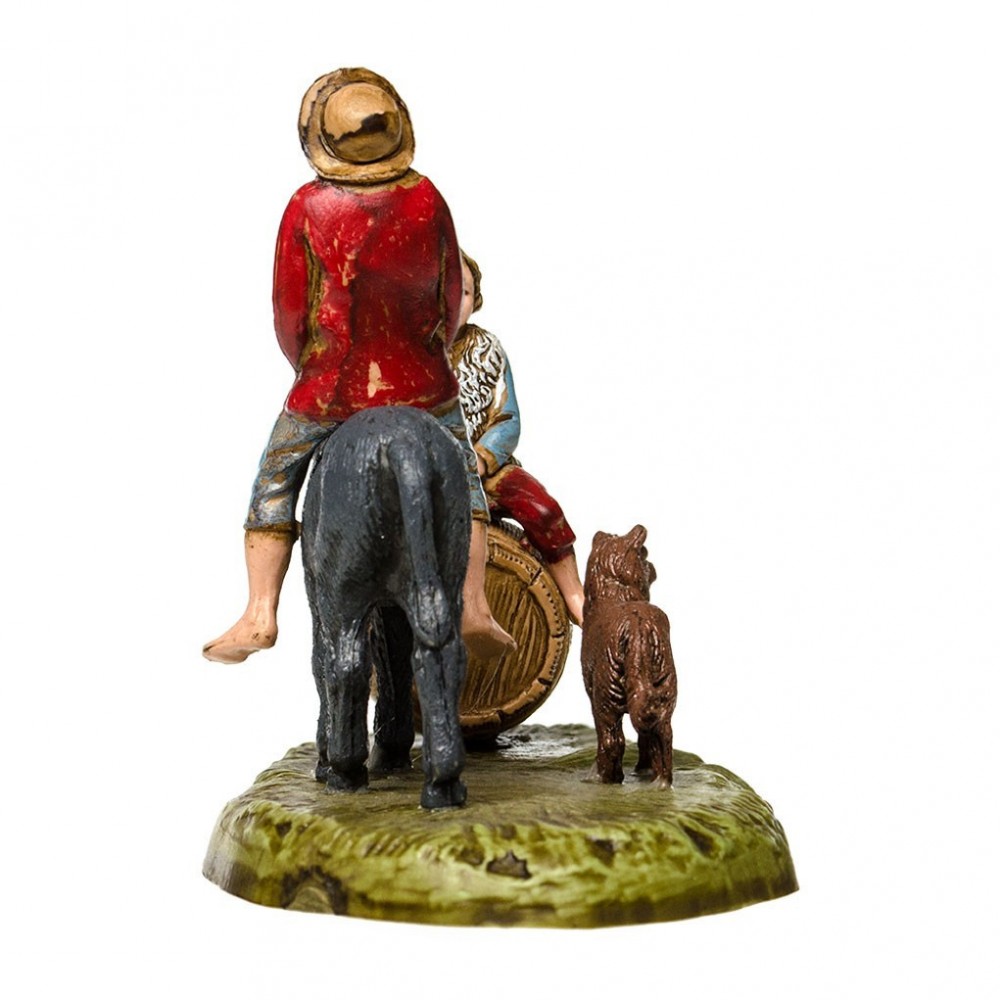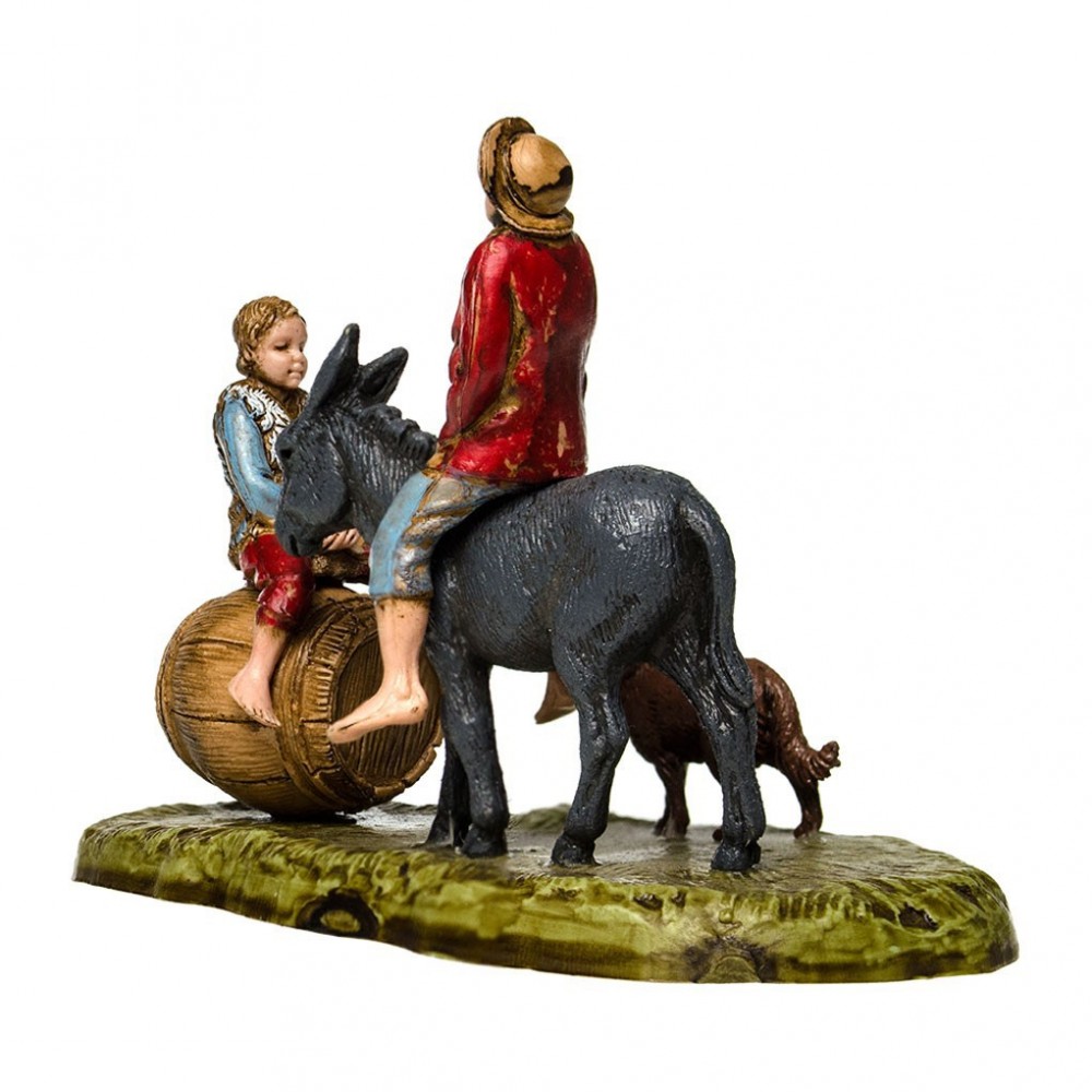 Statuina del Pastore sull'Asino con il Cane ed il Bambino sulla Botte per il Presepe 6 cm.