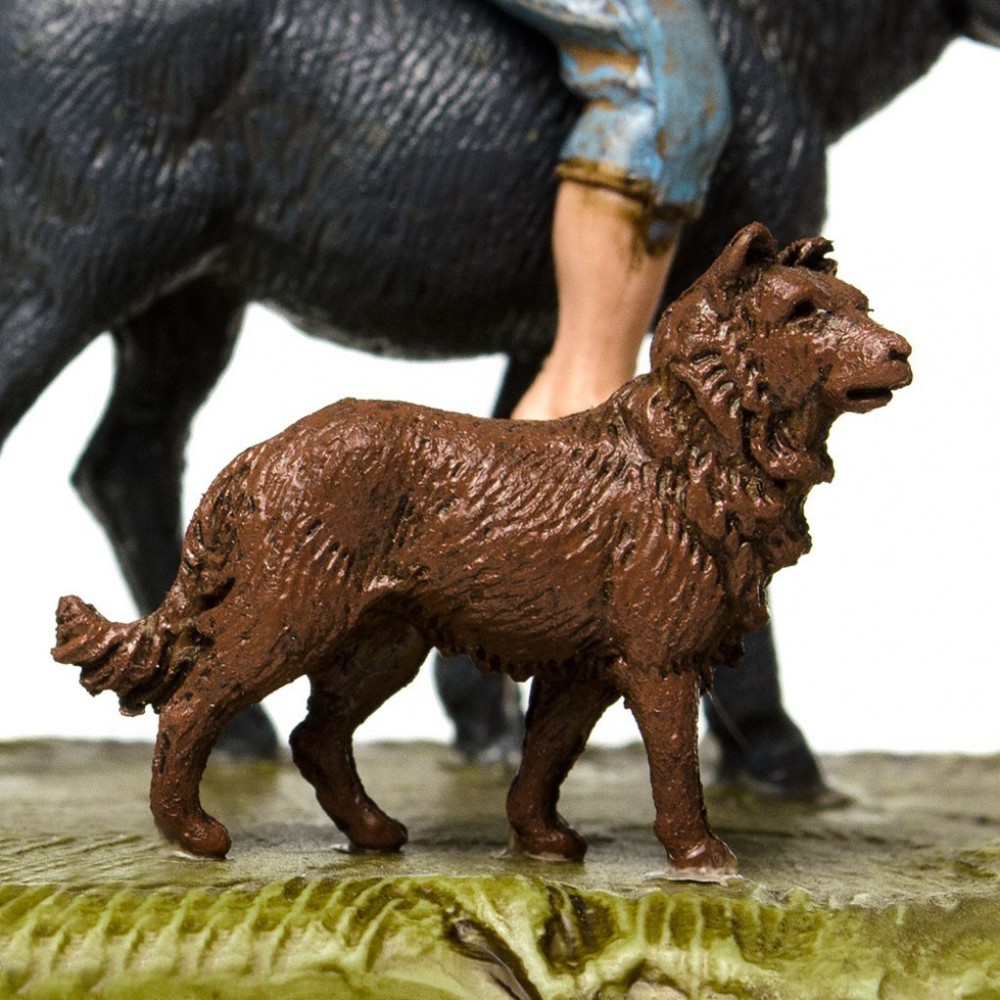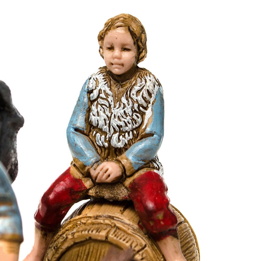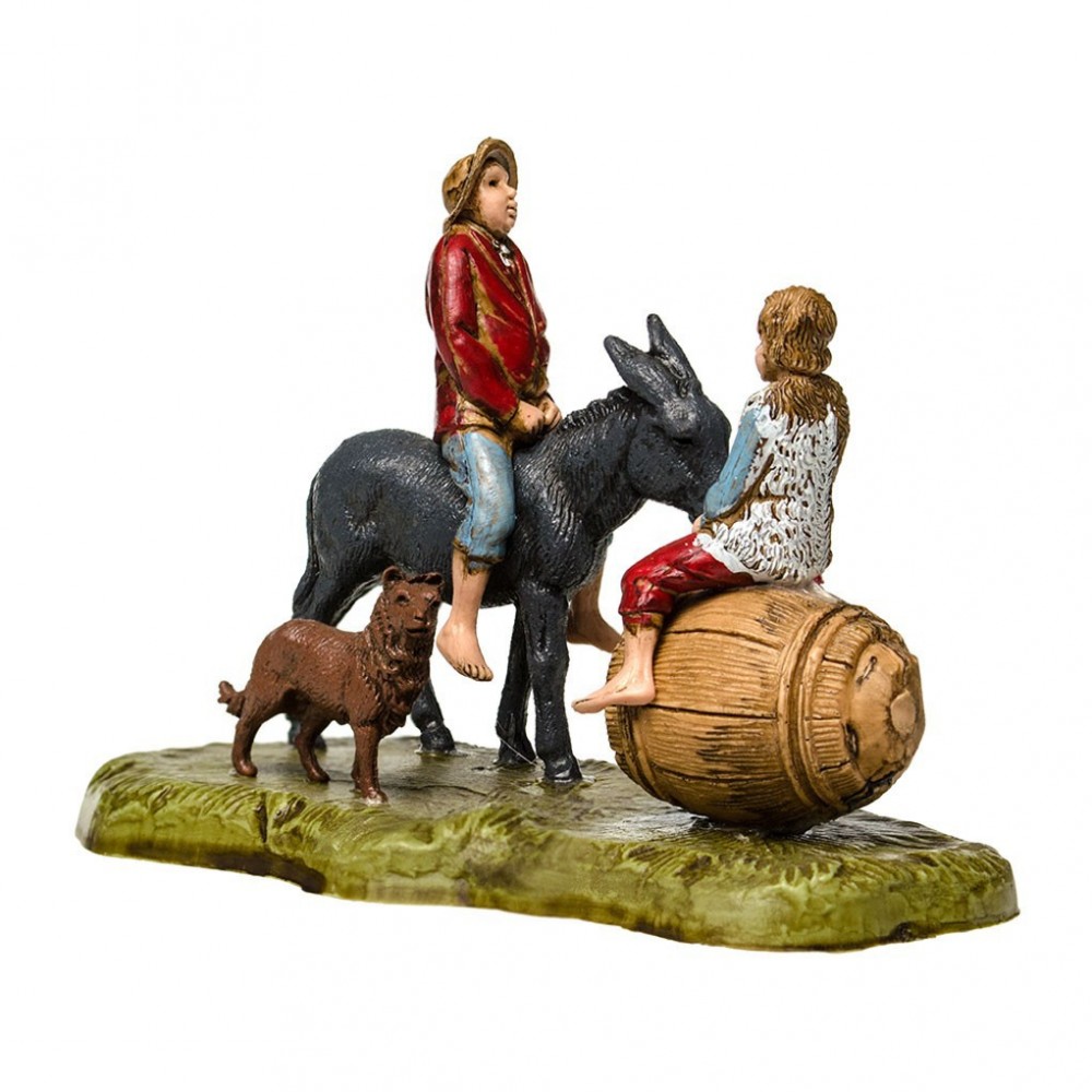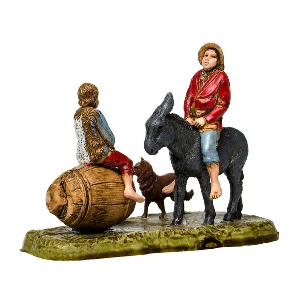 Statuina del Pastore sull'Asino con il Cane ed il Bambino sulla Botte per il Presepe 6 cm.