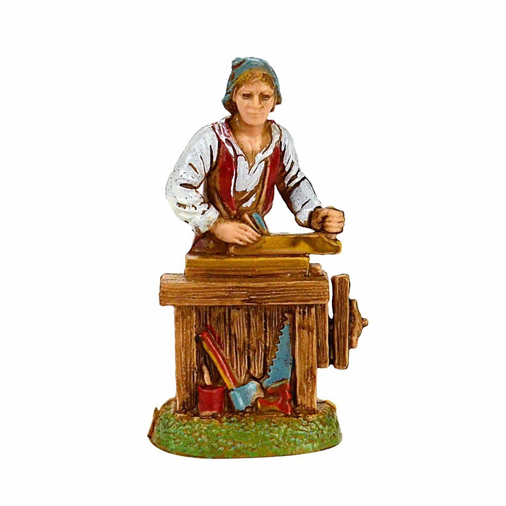 Personaggio Falegname con banco da Lavoro e Attrezzo per il Presepe Landi Moranduzzo 6 cm.