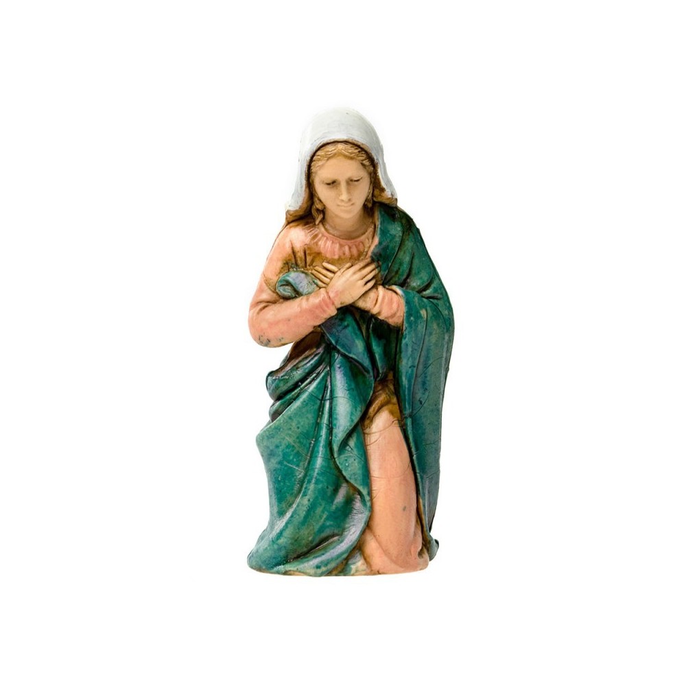 Madonna di Landi Moranduzzo 8 cm. Questa statuetta raffigura la Madonna in ginocchio che prega. Realizzata in PVC e dipinta finemente a mano.