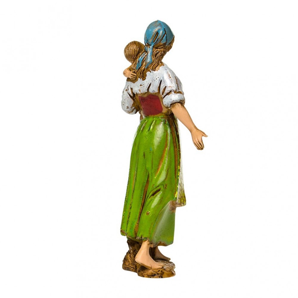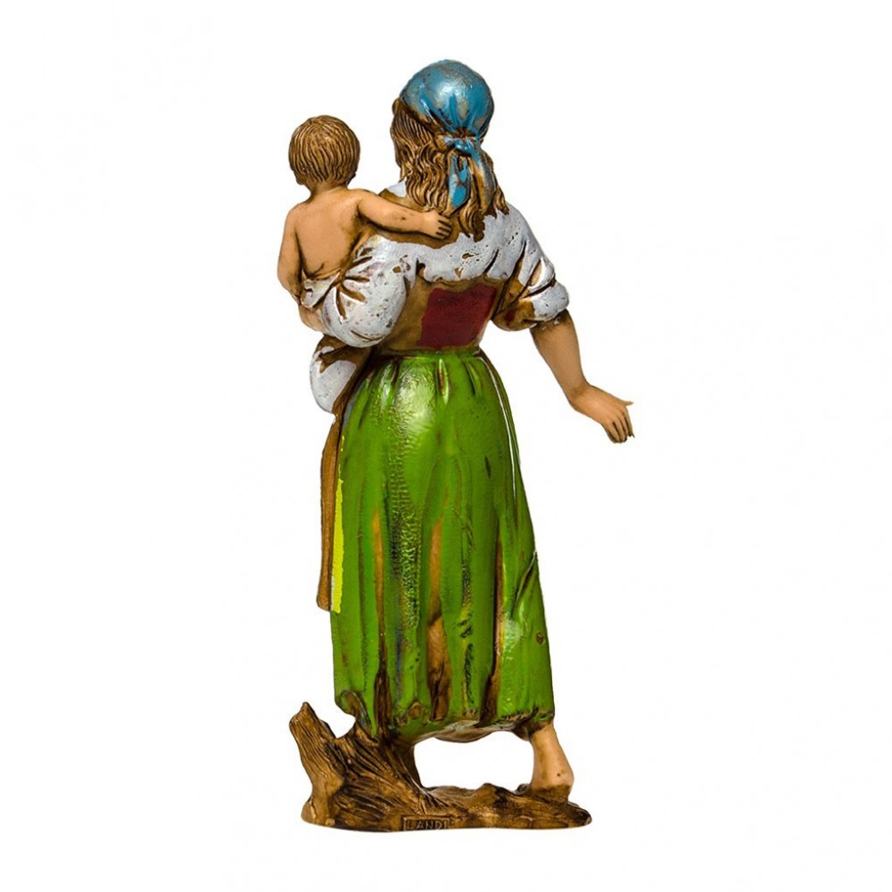 Zingara con Bambino in Braccio per il Presepe Landi 8 cm. Raffigura una donna mentre cammina con un bimbo in braccio.