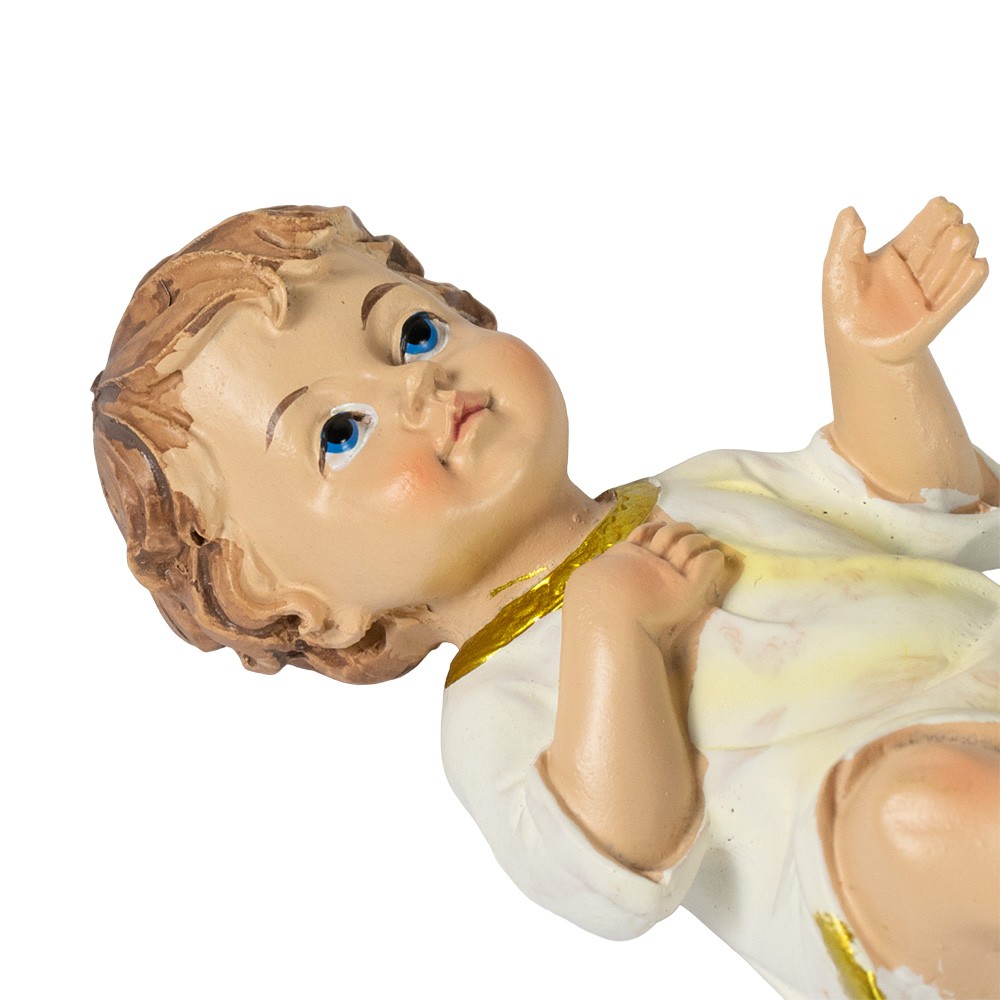 Statua di Gesù bambino completa di culla interamnete in resina, Landi / Moranduzzo 18 cm.