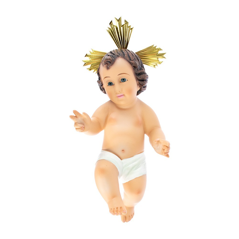Statua di Gesù bambino completa di culla interamnete in resina, Landi / Moranduzzo 18 cm.