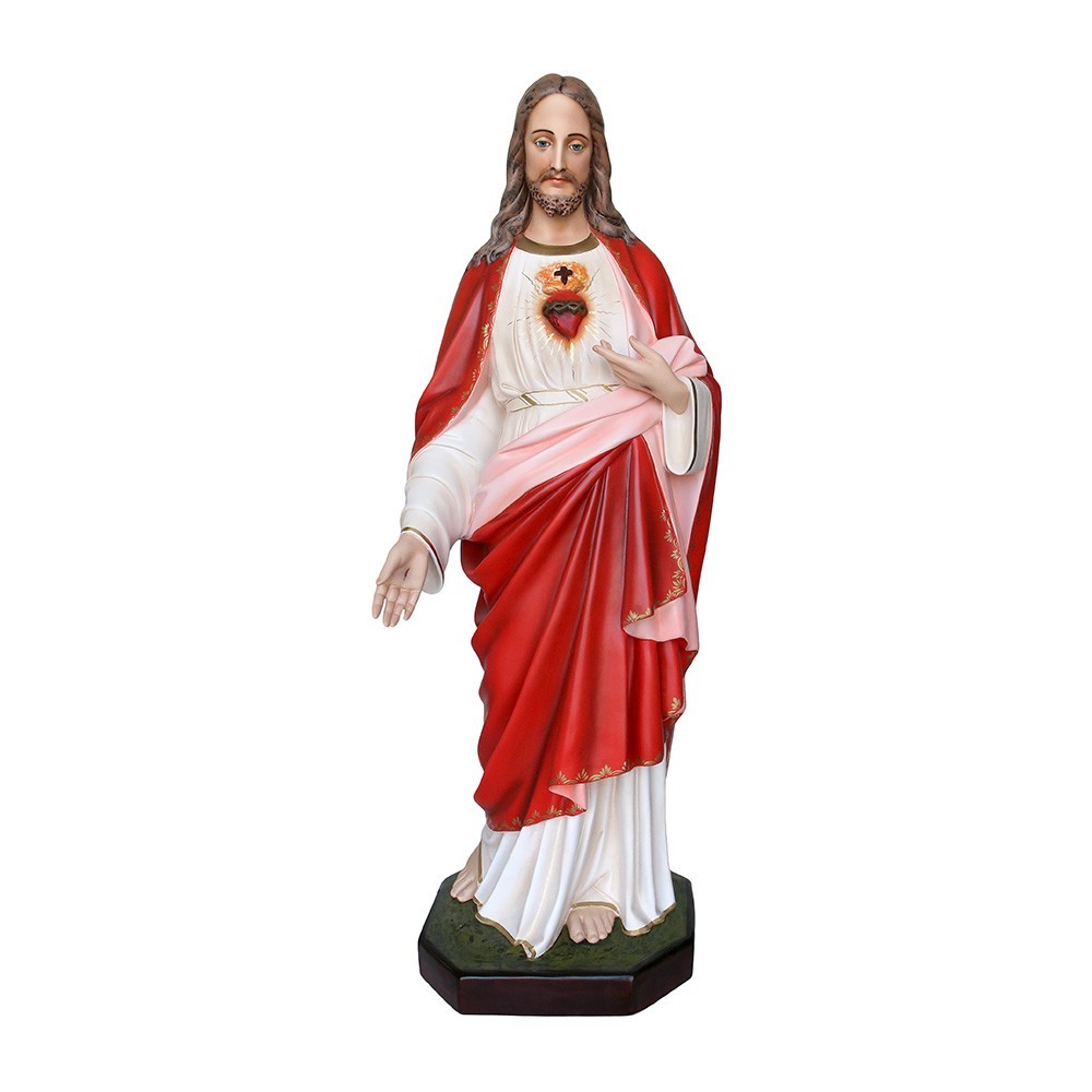 Statua del Sacro Cuore di Gesù in vetroresina. La statua è alta 155 cm viene realizzata con materiali adatti per l'esterno e resistenti alle intemperie.