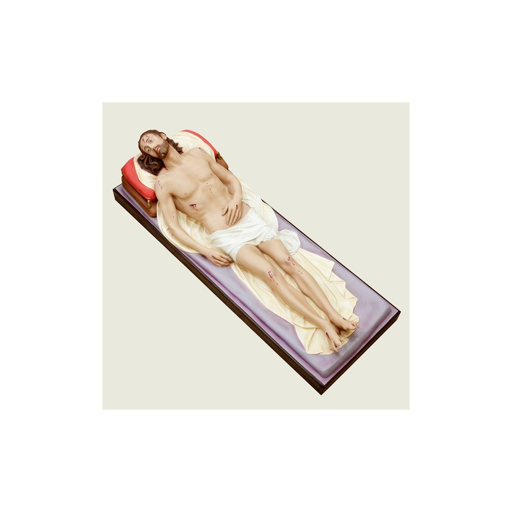 Statua di Gesù Morto in vetro resina (FIBERGLASS), materiale leggero, facilmente restaurabile in caso di rottura e resistente alle intemperie, quindi ideale per chiese, cappelle cimiteriali e processioni. Dipinto interamente a mano.
