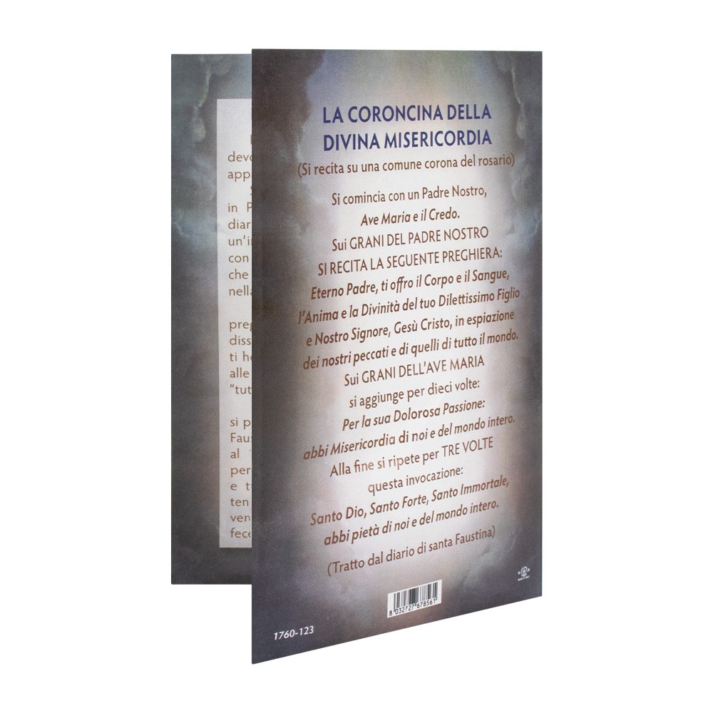 La statuetta è sagomata ed è realizzata con base in legno removibile, completa di foglietto pieghevole con la storia e una preghiera coordinata.