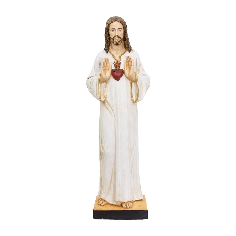 Statua di Gesù Maestro con cuore realizzata in resina, alta 60 cm circa.