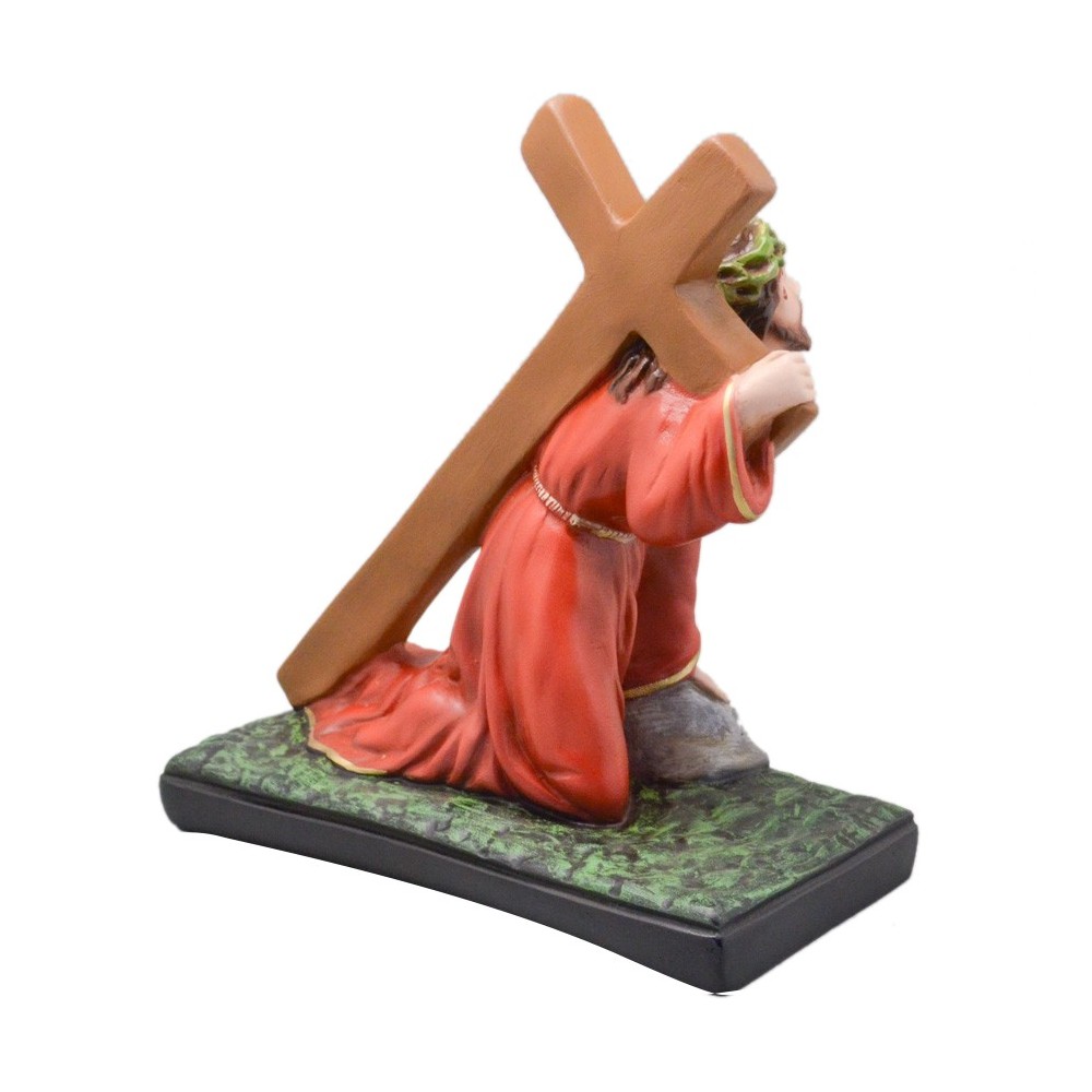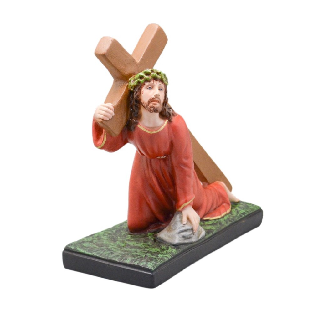 Statua Gesù cadente realizzata in resina.
