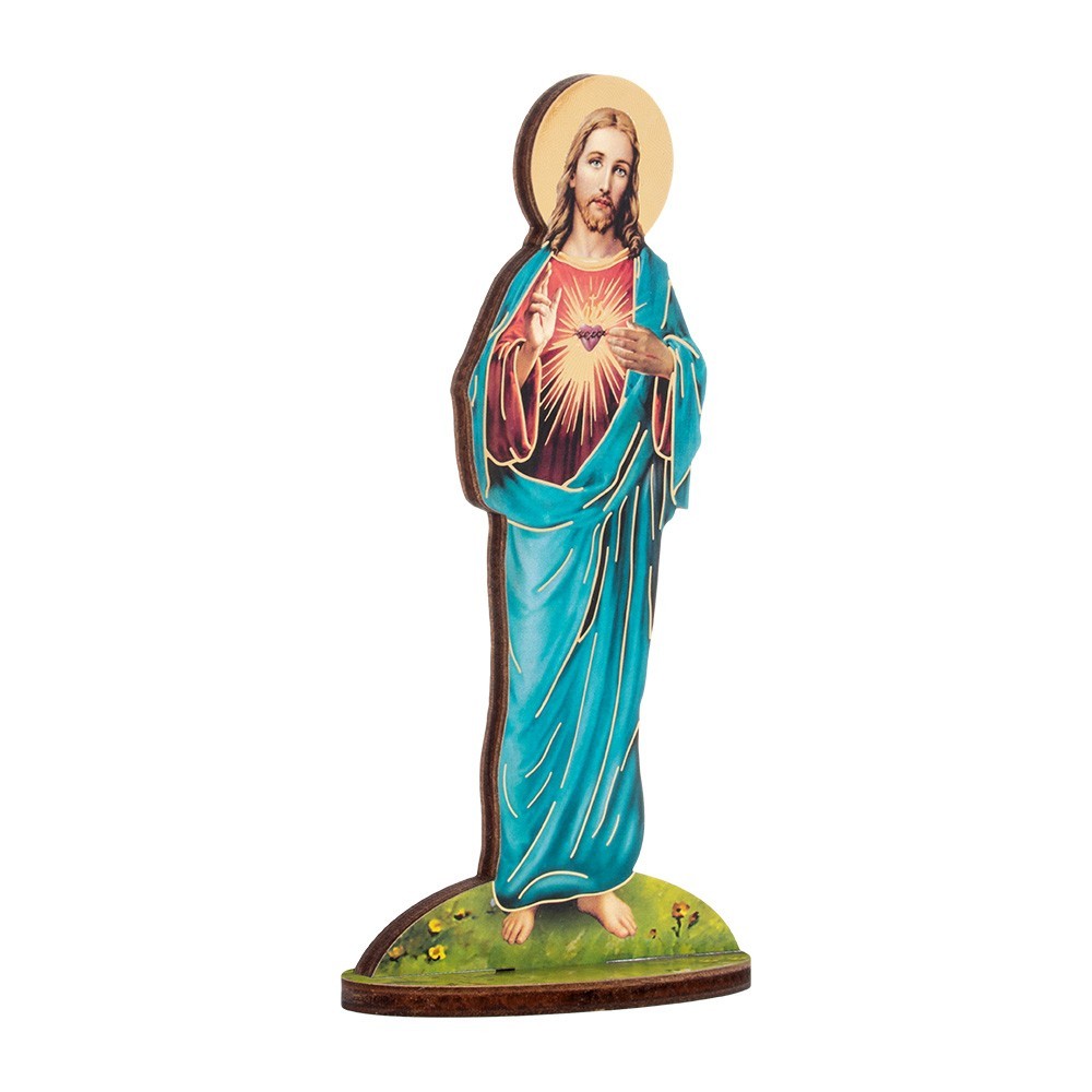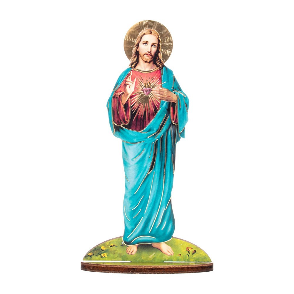 Immagine sacra con sagoma in legno del Sacro Cuore di Gesù.