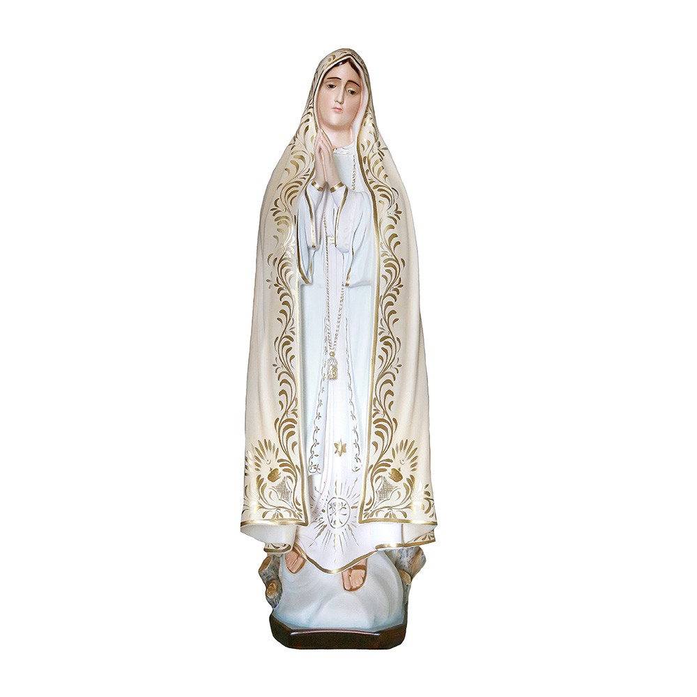 Statua della Madonna di Fatima prodotta in resina vuota e dipinta rigorosamente a mano con fine e ricco decoro sul mantello.