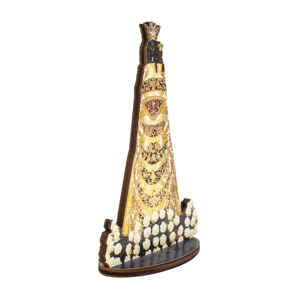 Statuetta bidimensionale in legno sagomato della Madonna di Loreto.