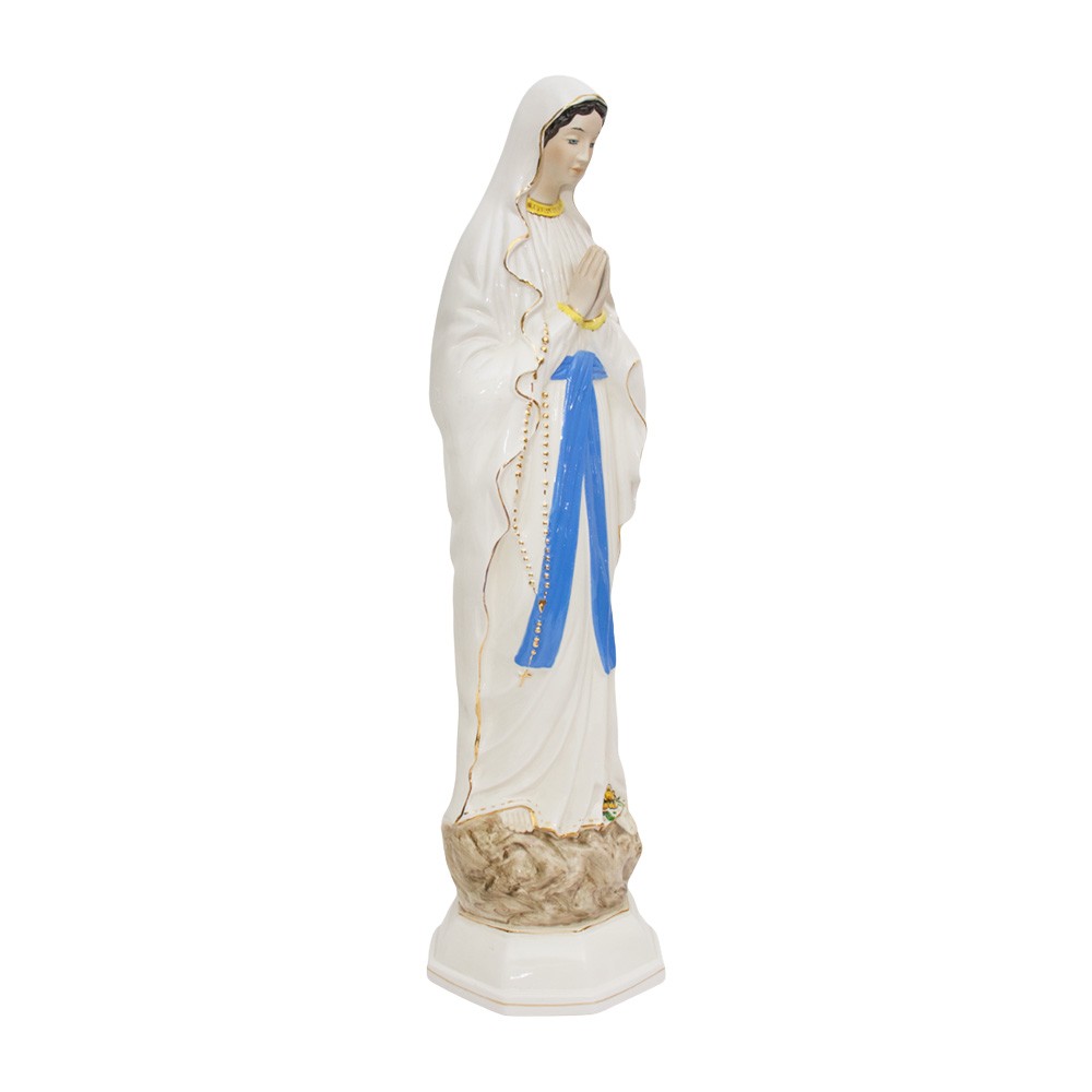 Statua della Madonna di Lourdes realizzata in ceramica e dipinta finemente a mano.