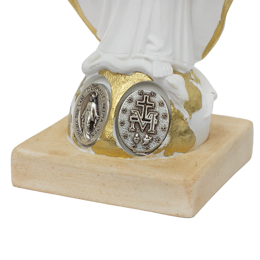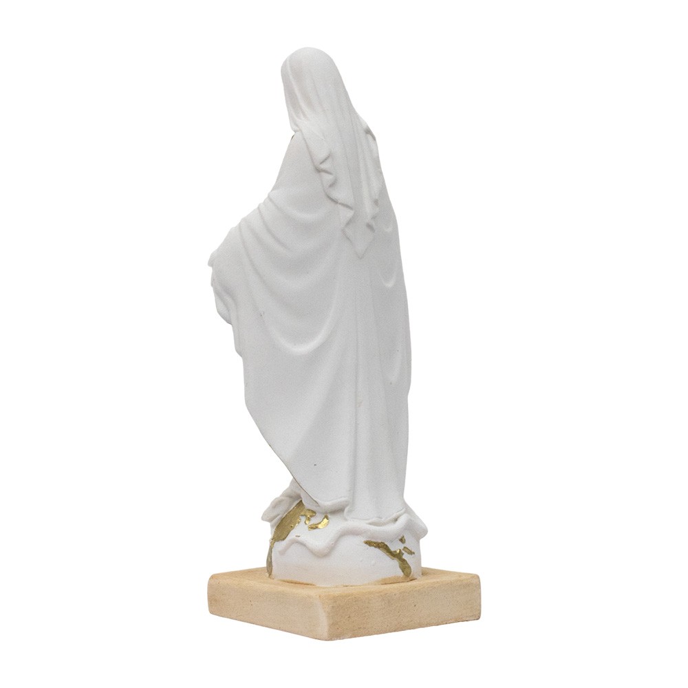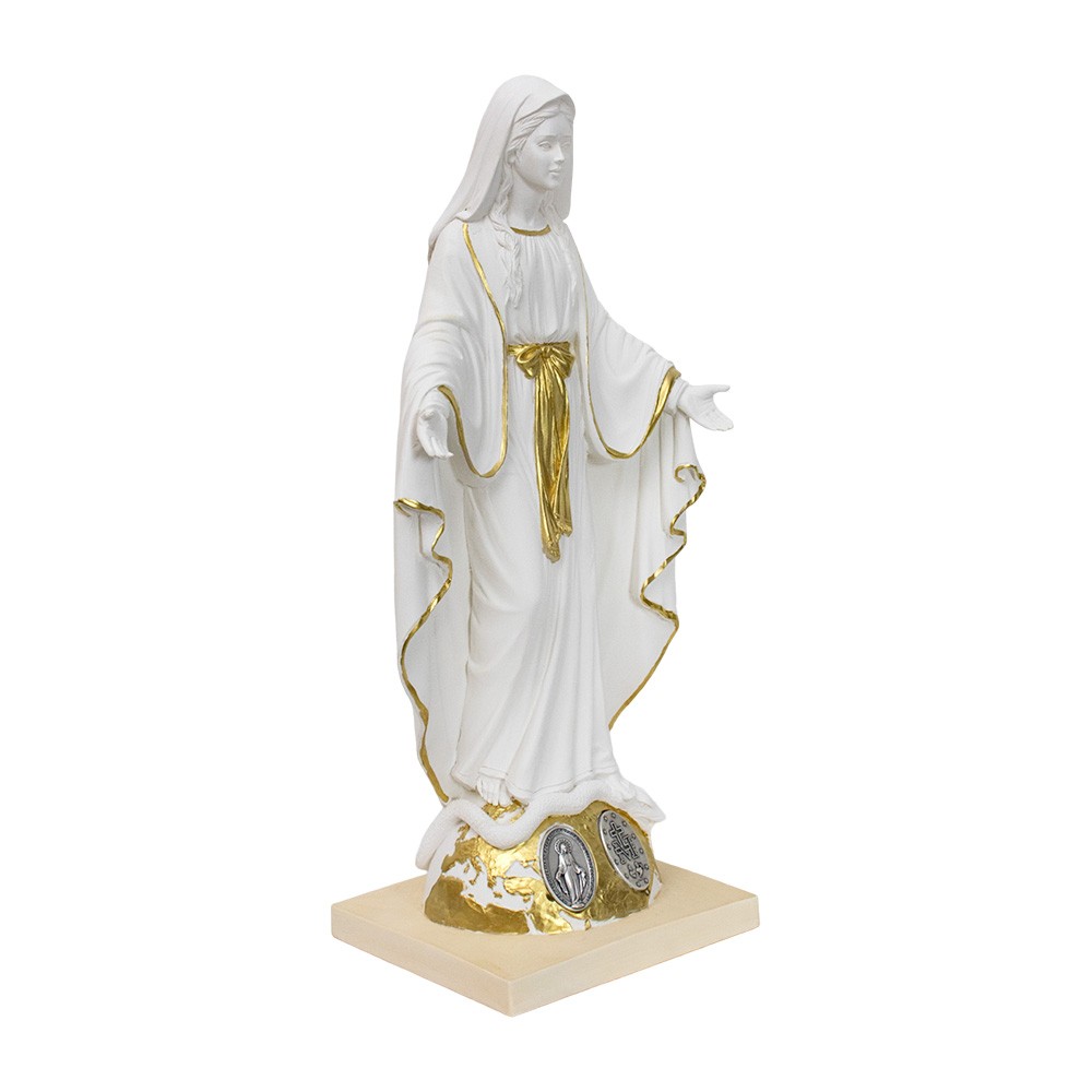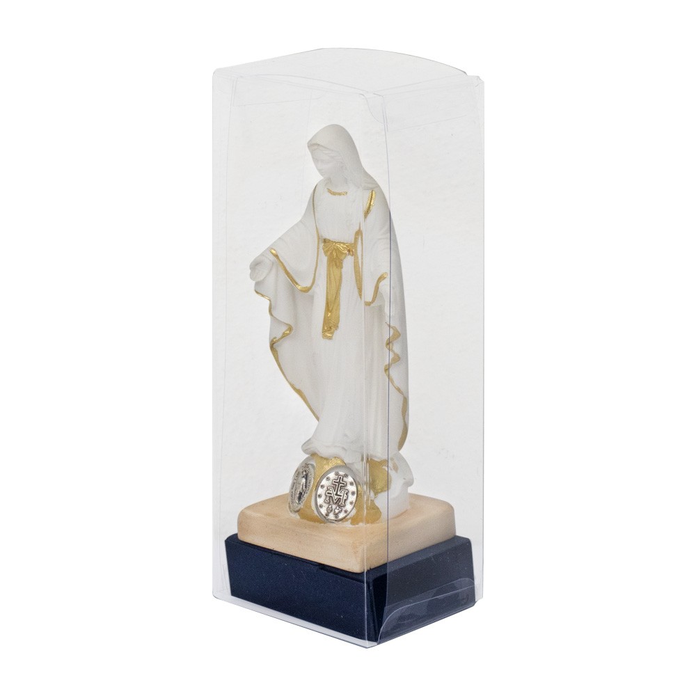 Realizzata in resina bianca dipinta con medaglia Miracolosa in metallo.