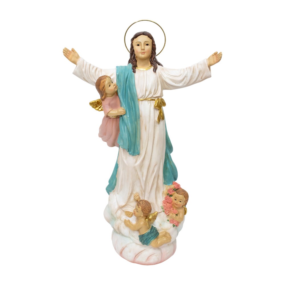 Statua della Madonna Assunta con Angeli e aureola in metallo.