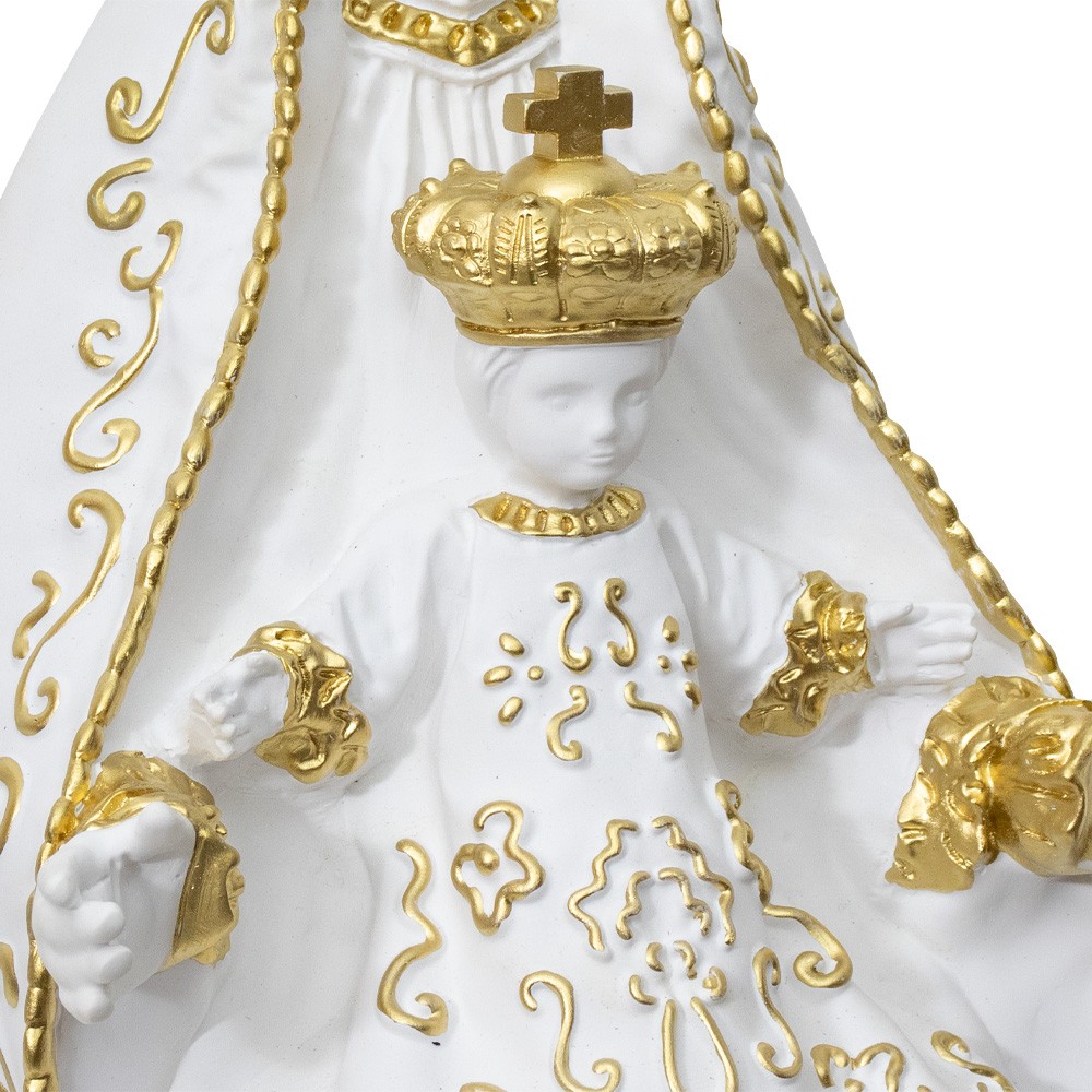 Statua della Madonna Incoronata di Foggia (del Santuario di Borgo Incoronata di Foggia), realizzata interamente in resina dipinta di bianco con inserti dorati.