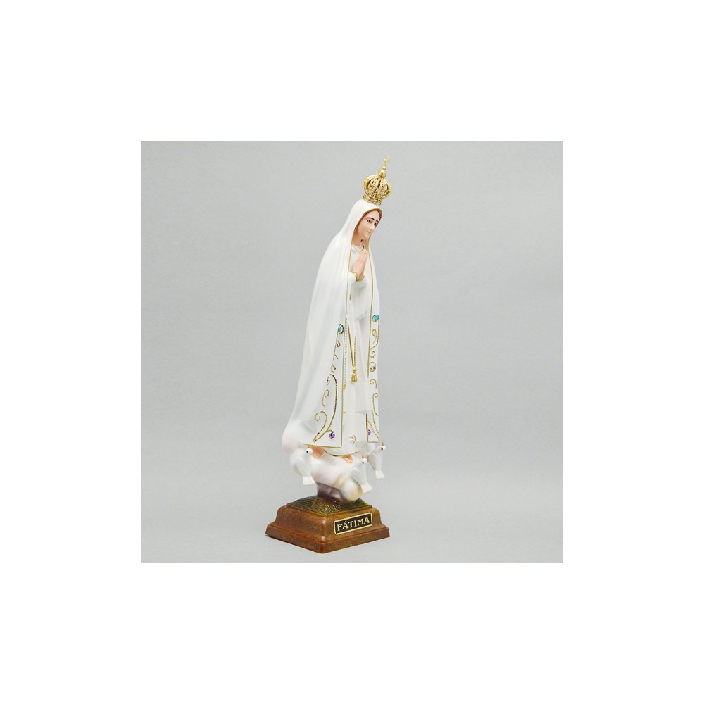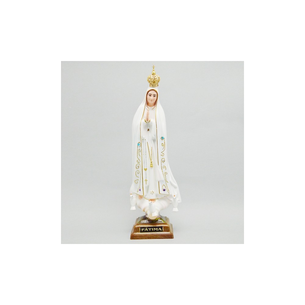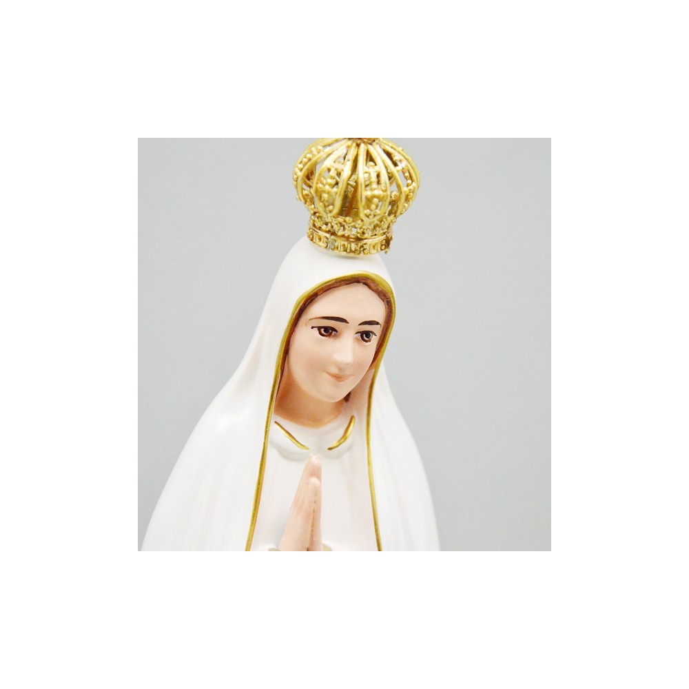 Statua Madonna di Fatima realizzata in resina di manifattura portoghese. Scatolata.