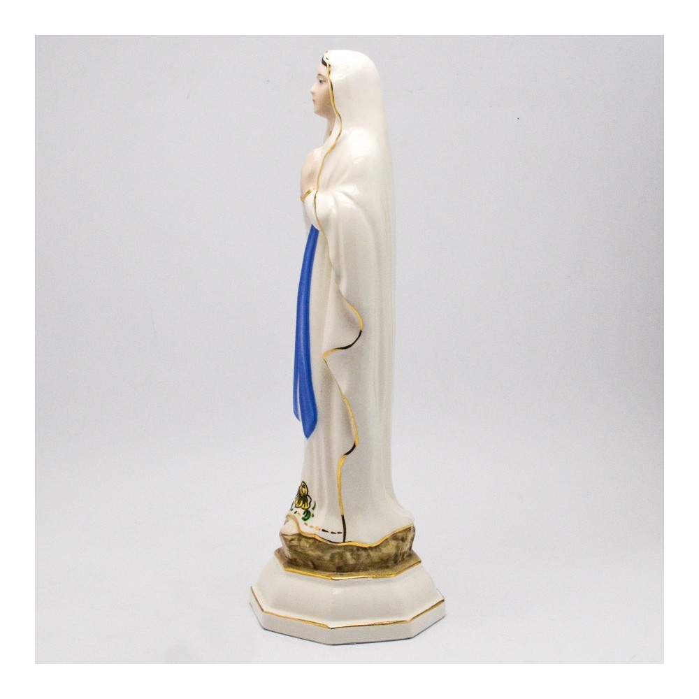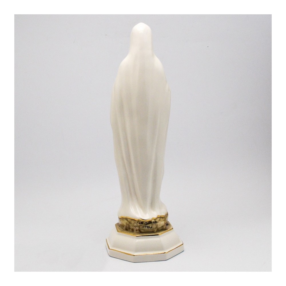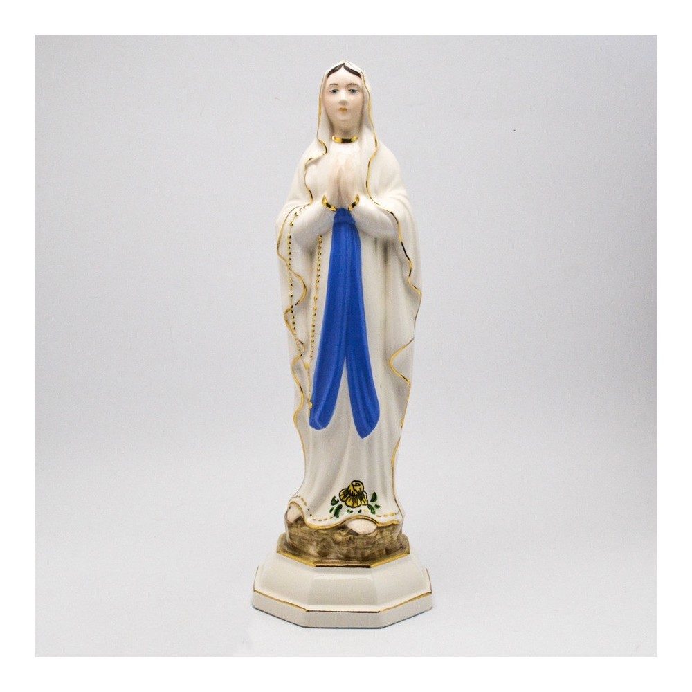 Statua della Madonna di Lourdes realizzata in porcellana. Dipinta a mano con dettagli in oro. La statua è un prodotto made in Italy.