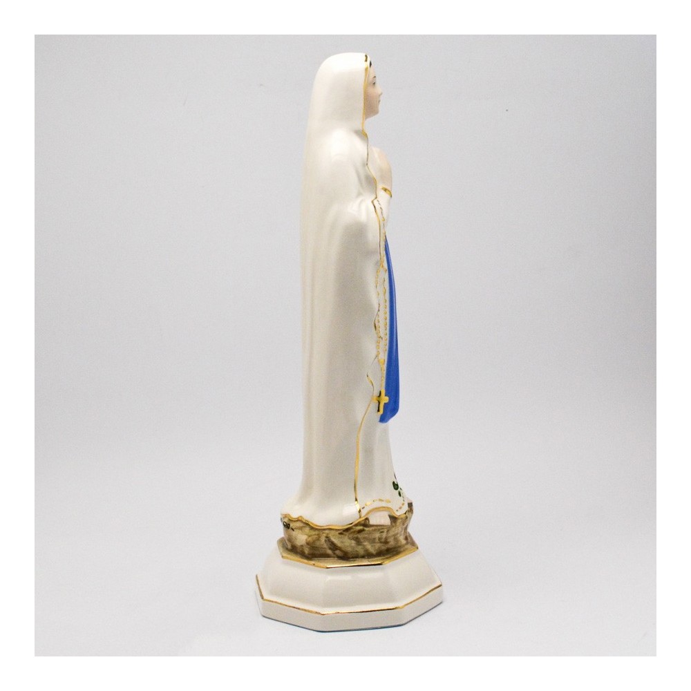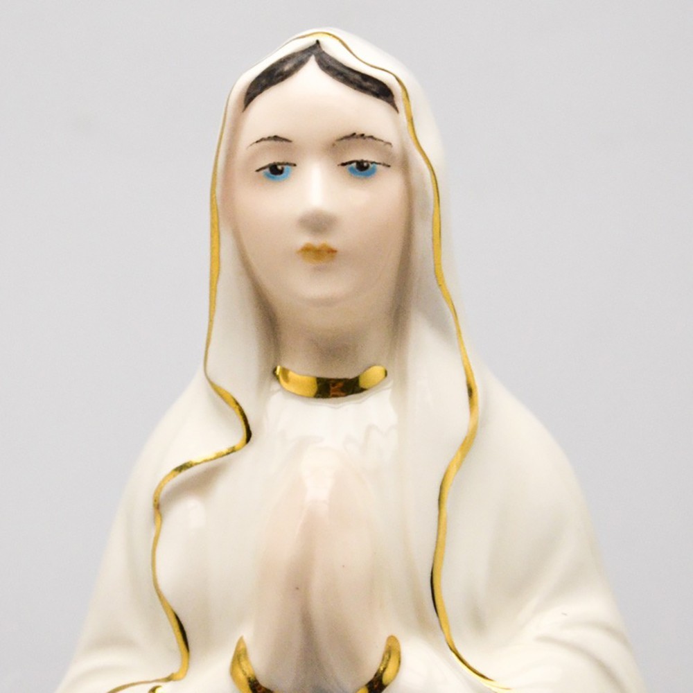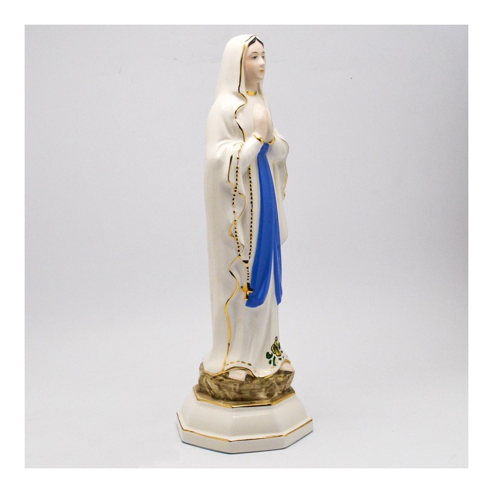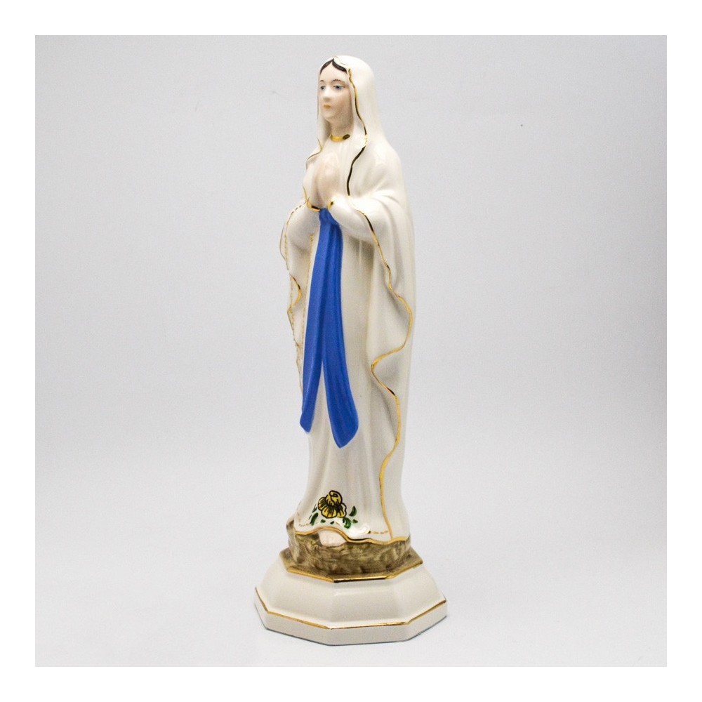 Statua della Madonna di Lourdes realizzata in porcellana. Dipinta a mano con dettagli in oro. La statua è un prodotto made in Italy.