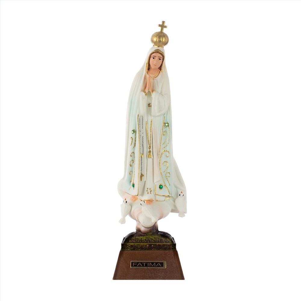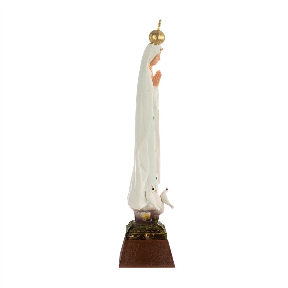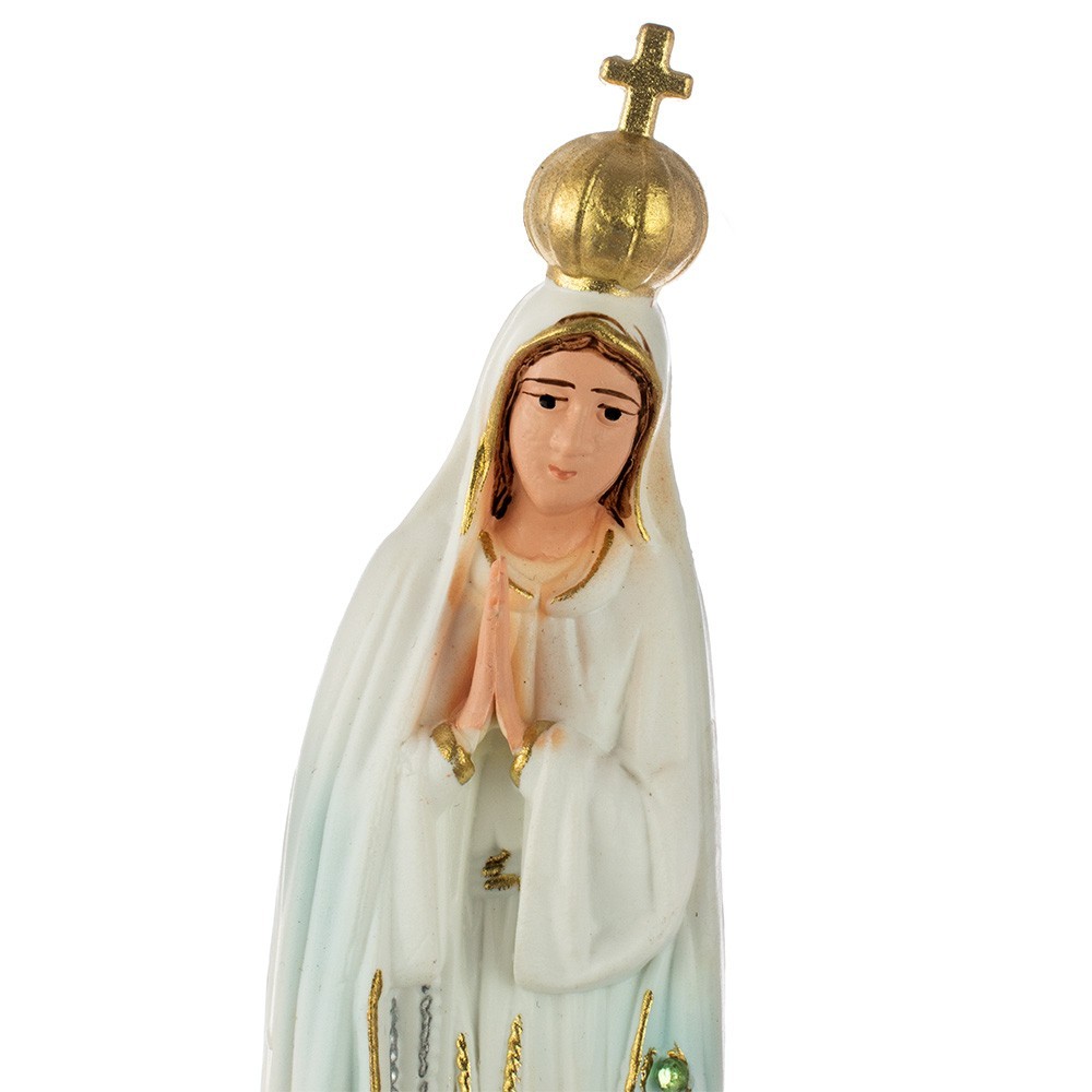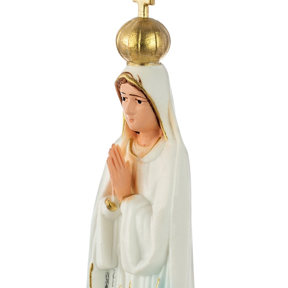 Statua Madonna di Fatima realizzata in pvc. La statua è alta 17 cm. Scatolata.