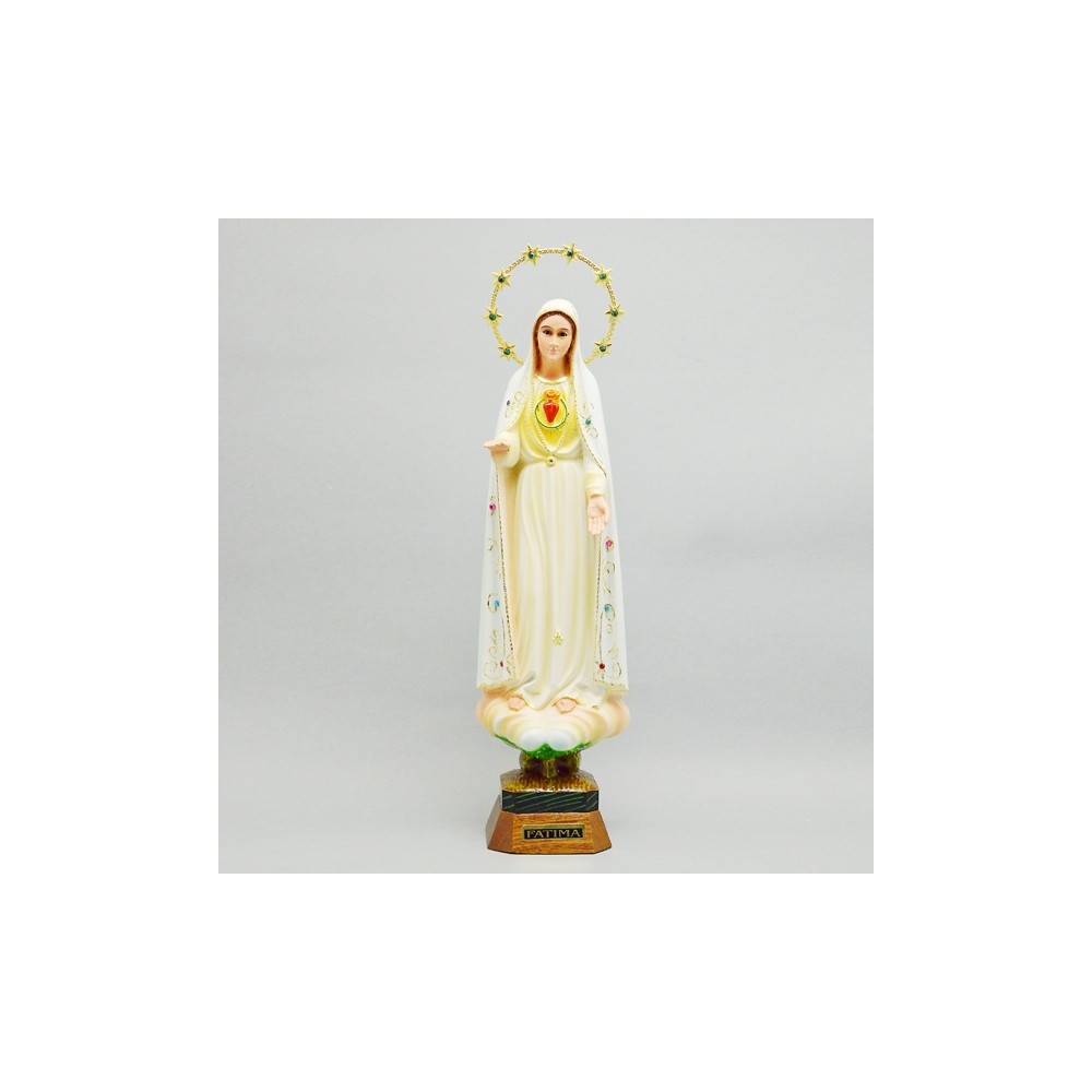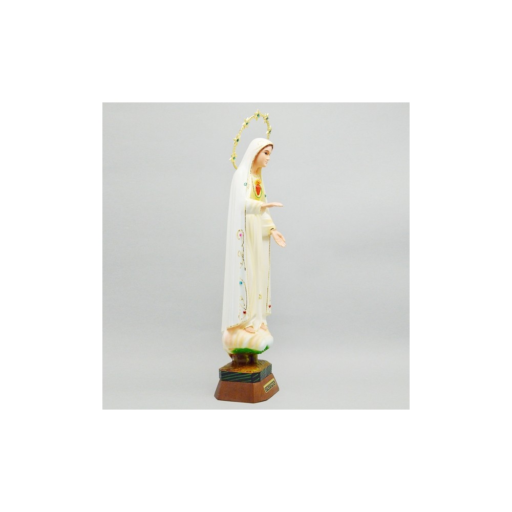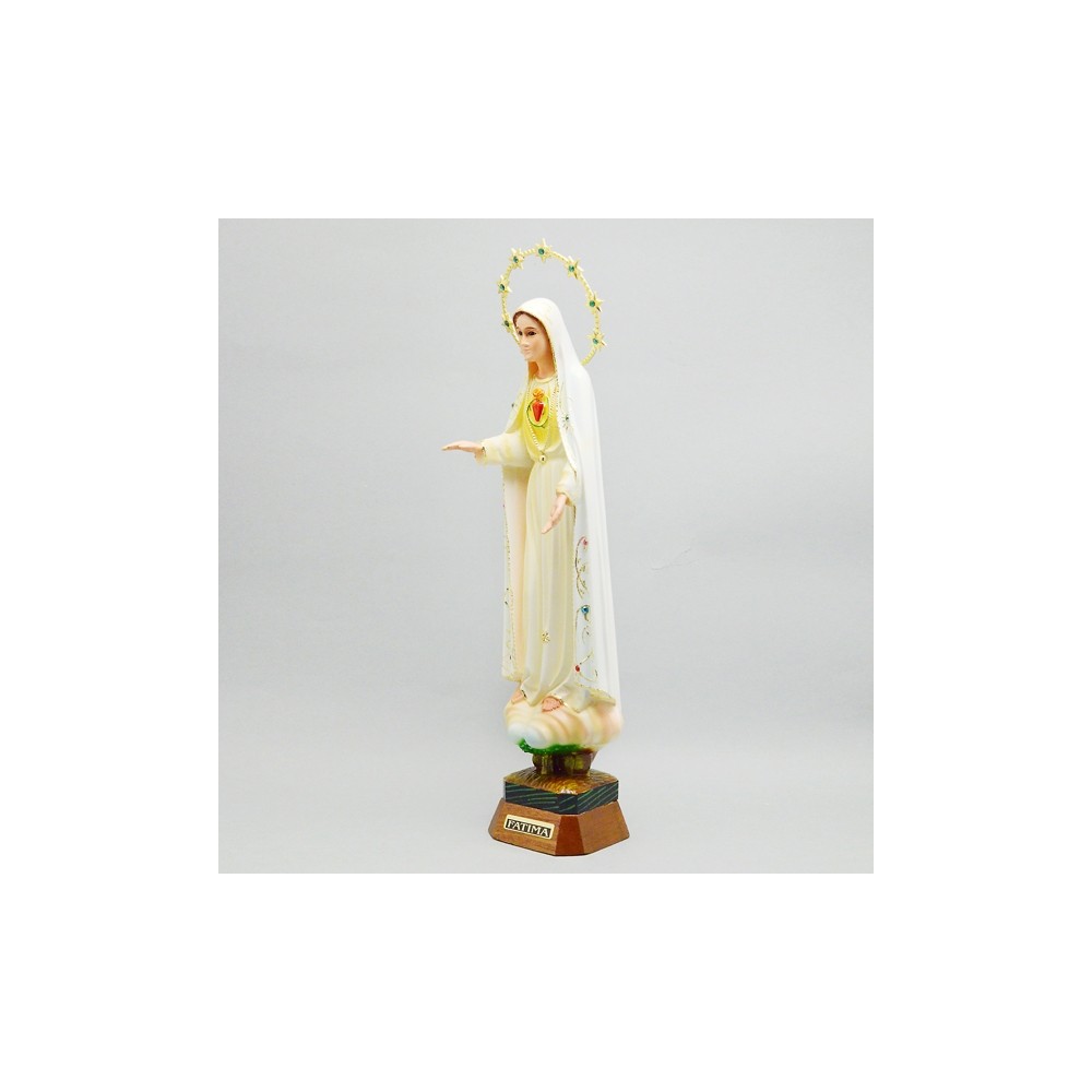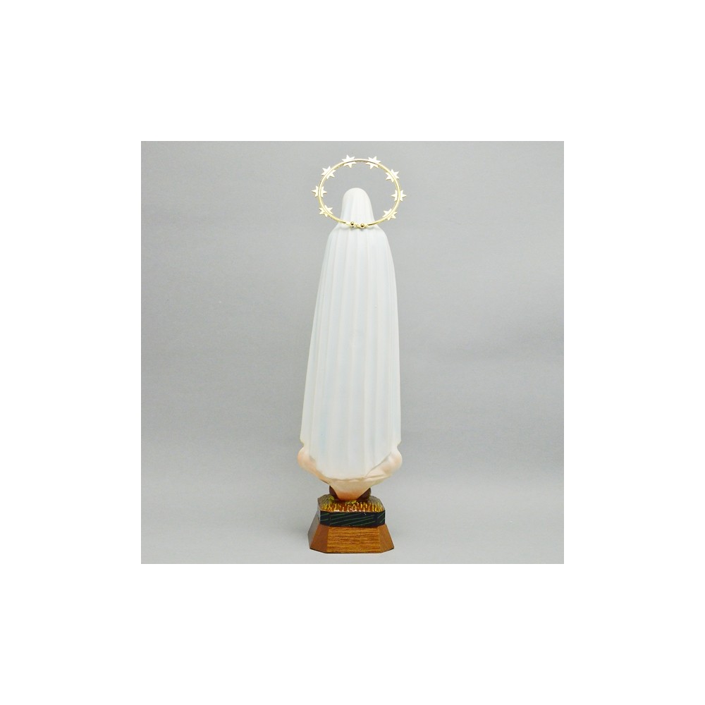 Statua raffigurante la seconda apparizione della Madonna di Fatima, in pvc dipinta a mano con occhi in vetro che la rendono molto espressiva. la statua è prodotta direttamente in Portogallo. Scatolata.