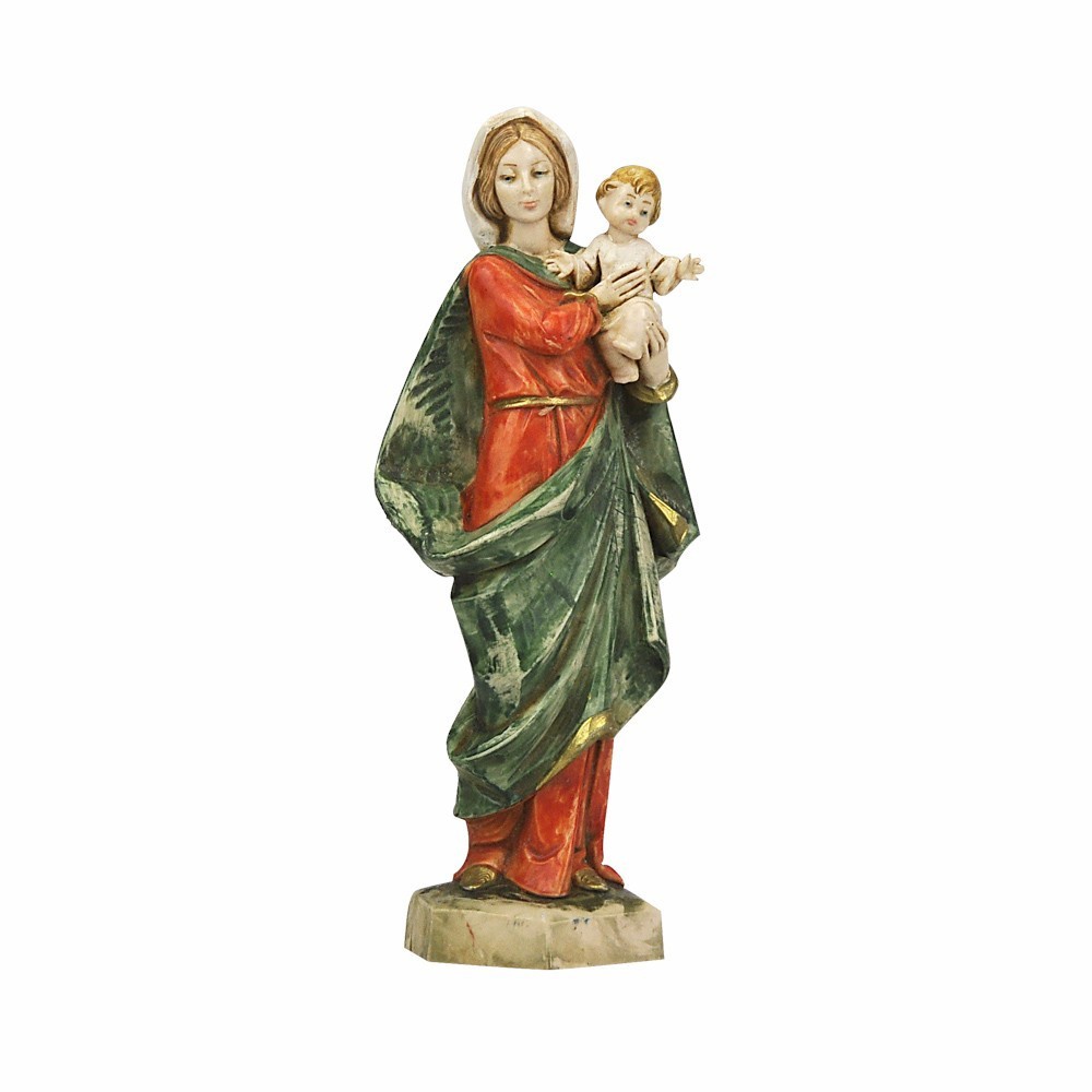 Statuetta sacra da collezione: Madonna con bambino in braccio con il velo.