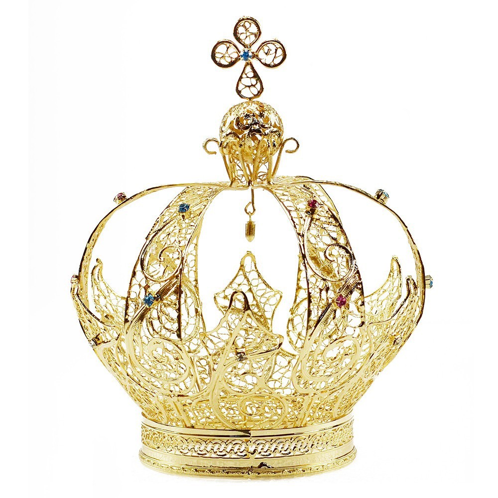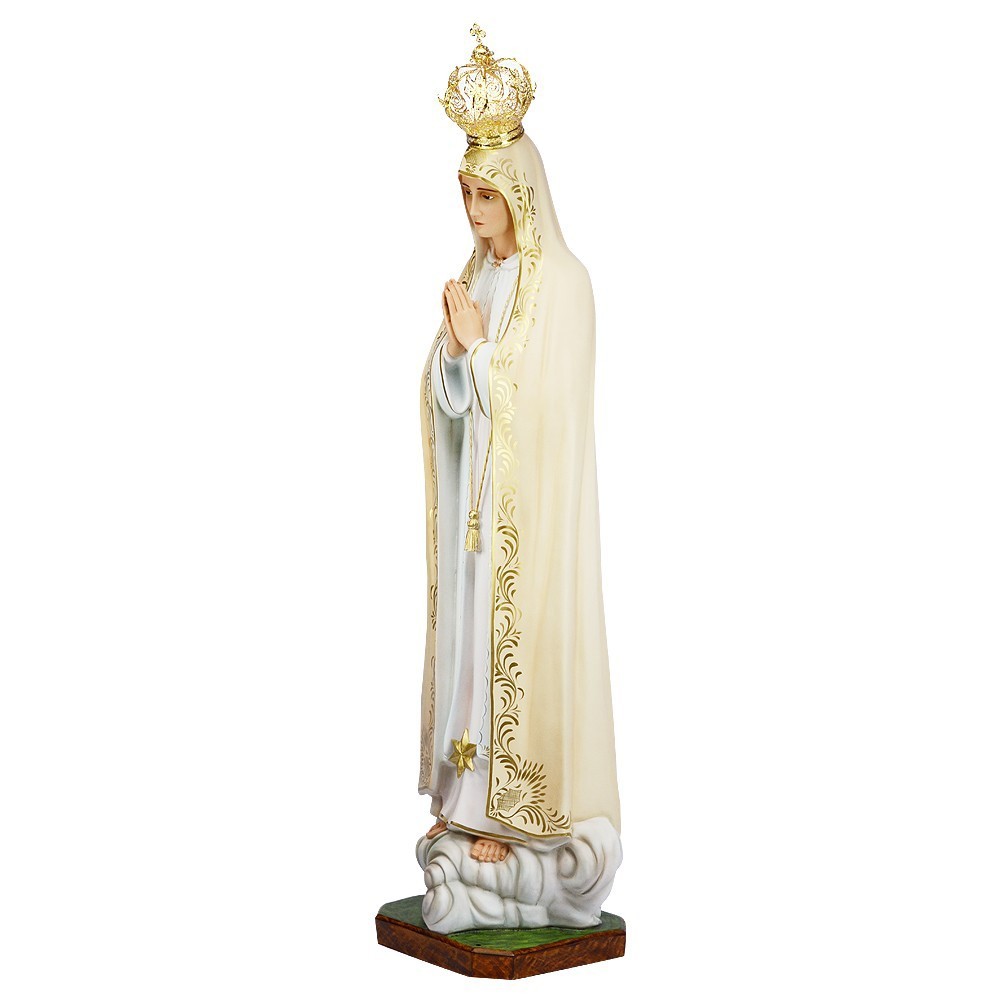 Statua Madonna di Fatima in vetroresina. Ricca di decori, dipinta interamente a mano E Completa di corona. Prodotta da un'azienda italiana produttrice di statue sacre in gesso, resina e vetroresina da diversi anni, avendo cura nei minimi particolari. La statua è realizzata con materiali adatti per l'esterno.