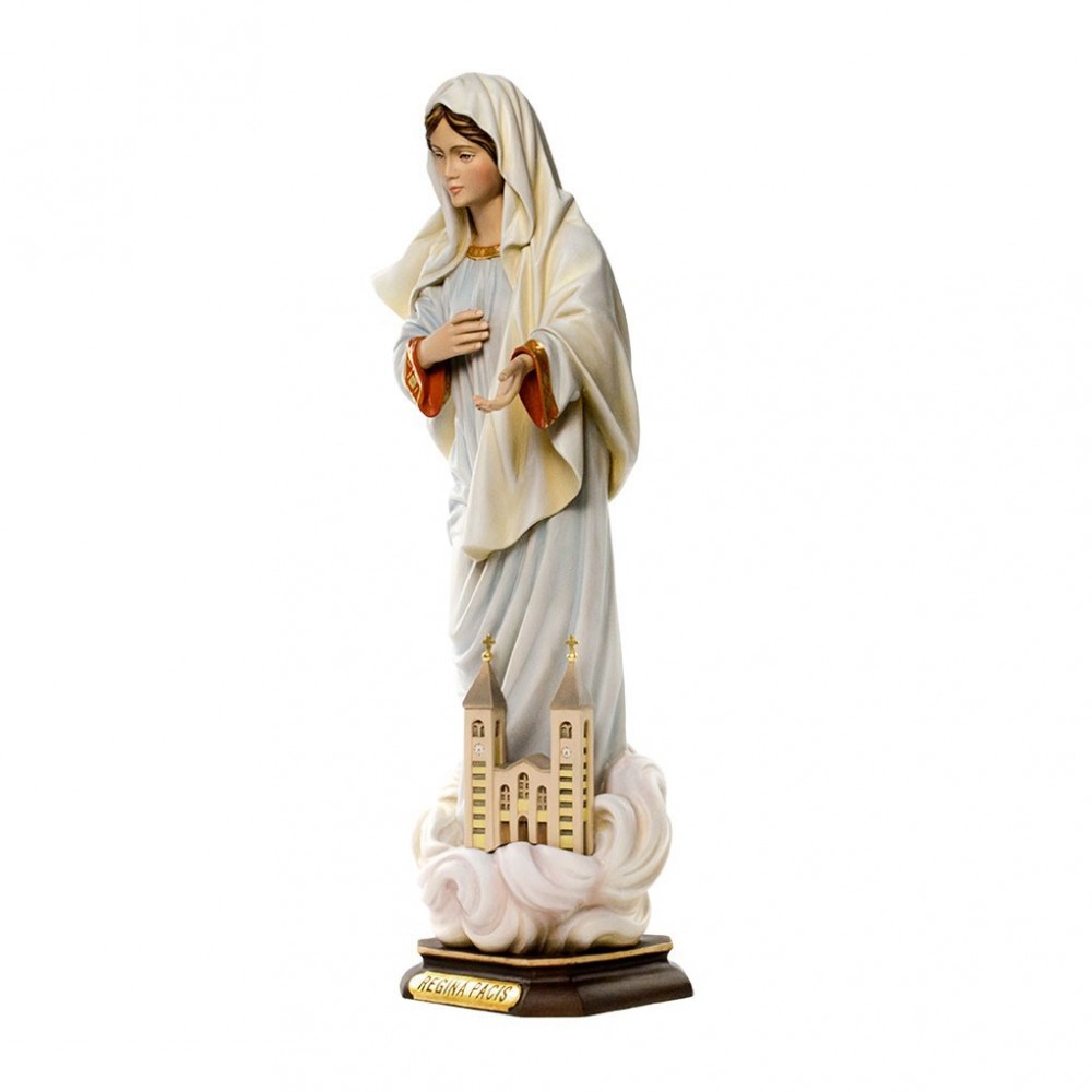 Statua Regina della Pace di Medjugorje con Chiesa in Legno.