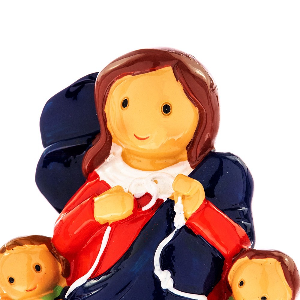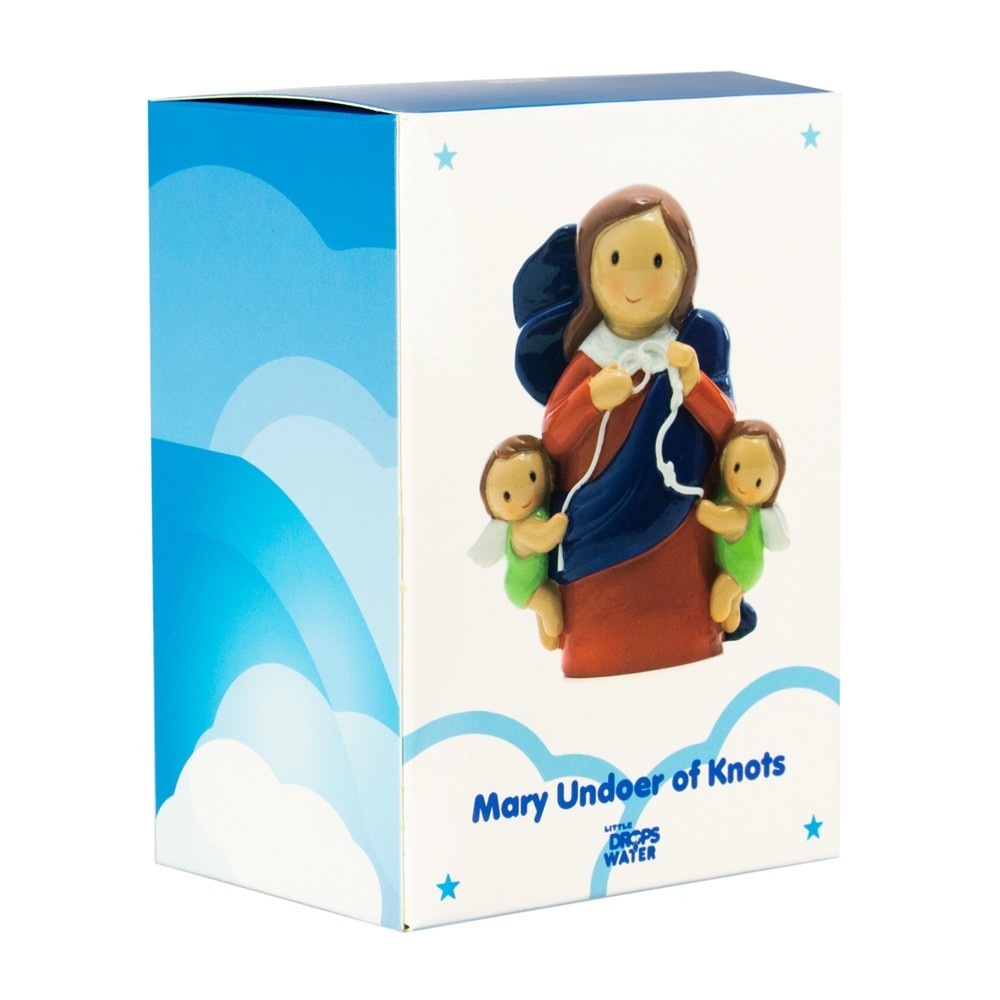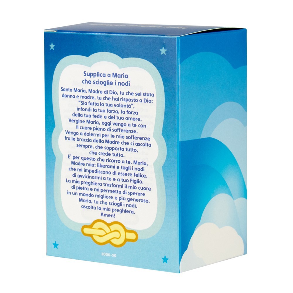 Statua di Maria dei Nodi. Questa simpatica statuina è realizzata in resina ed è perfetta per i bambini. E' dipinta interamente a mano. La statuetta viene confezionata in una carinissima scatola con immagine sul davanti della Madonna e sul retro la Supplica a Maria che scioglie i nodi.
