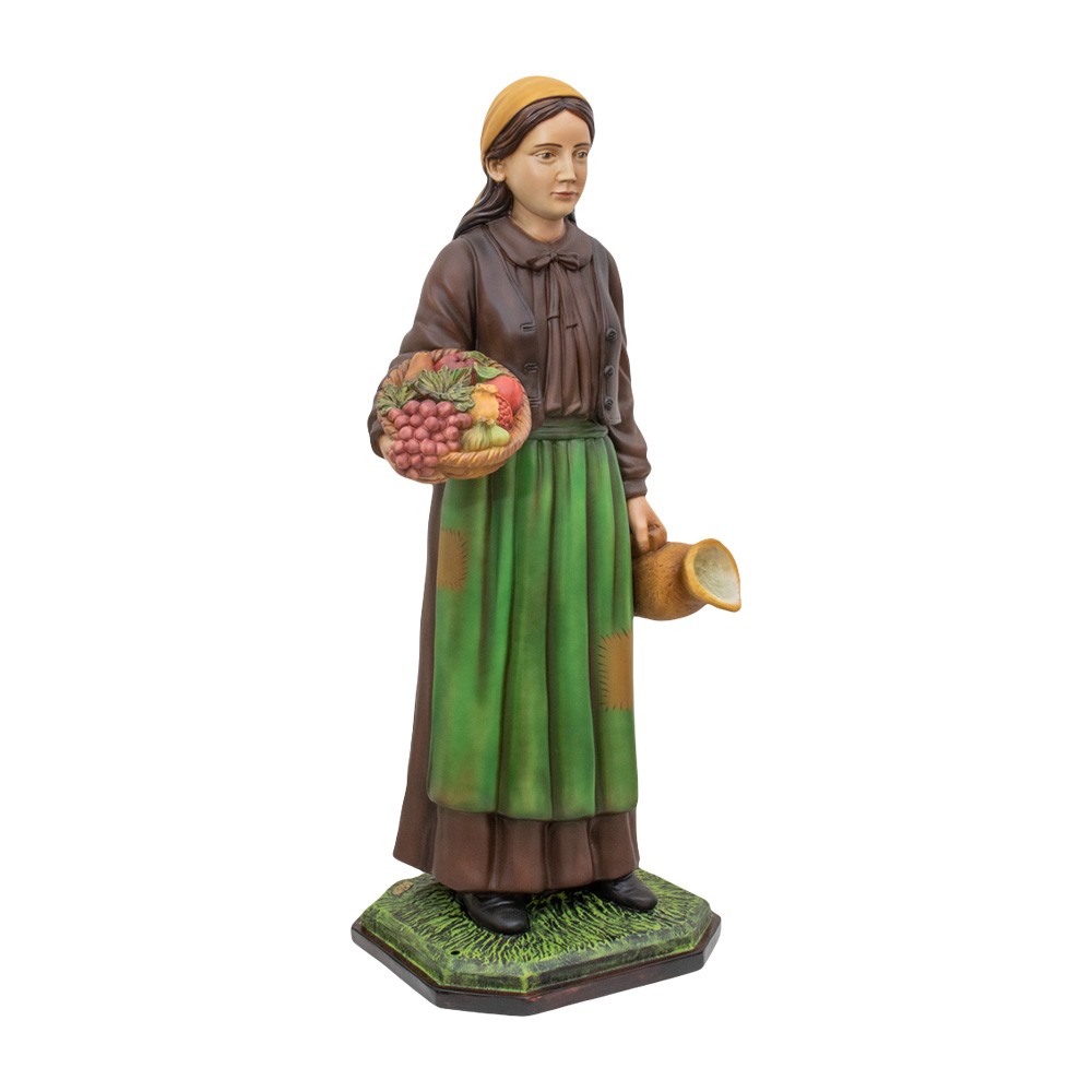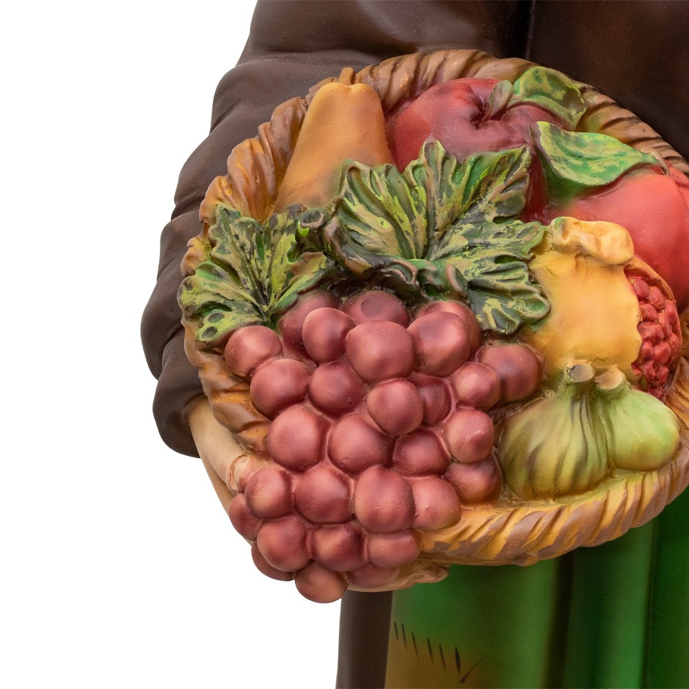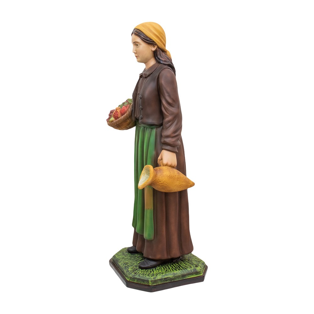 Statua pastorella con cesto di frutta e anfora realizzata in resina vuota proporzionata per il presepe napoletano con altezza 100 cm.