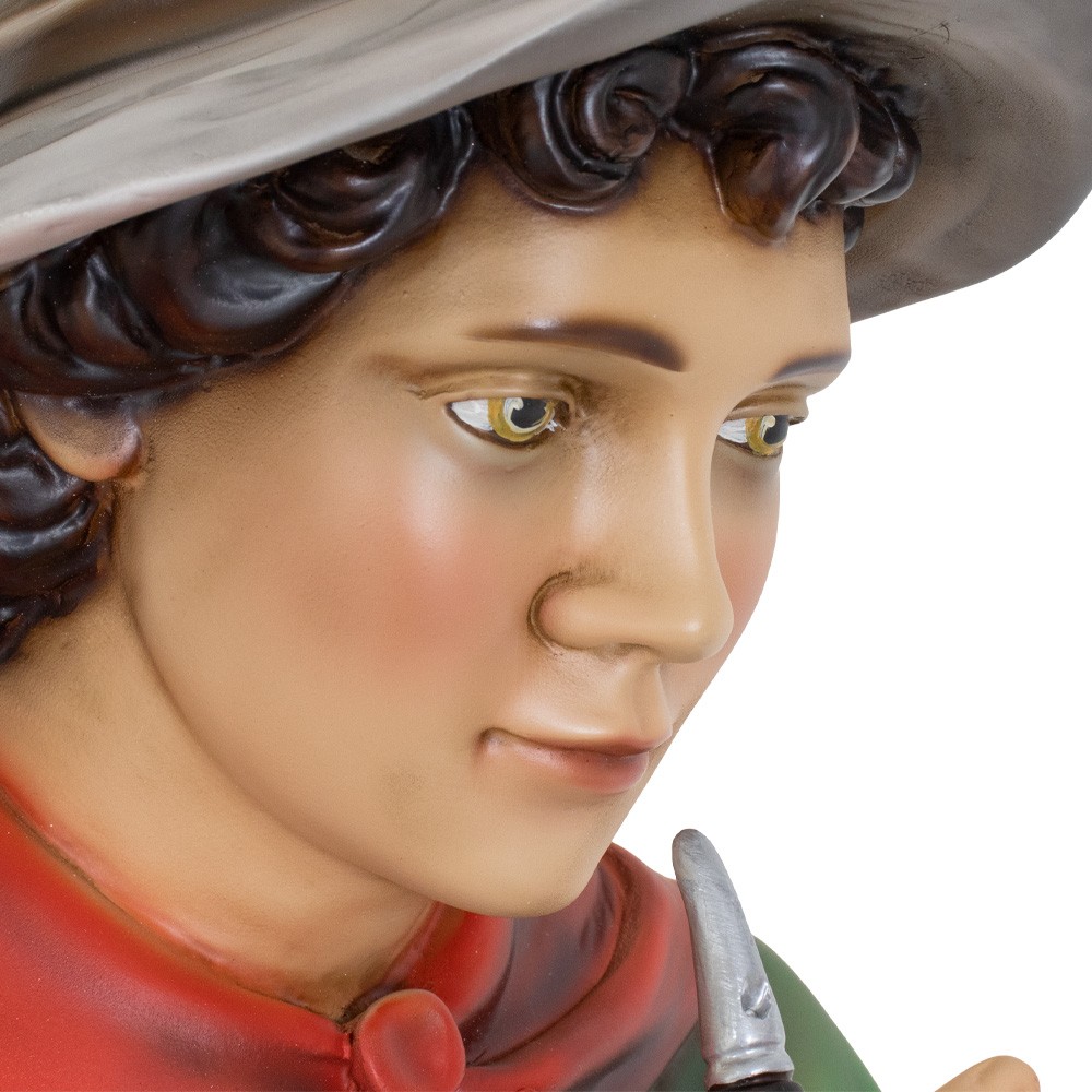 Statua Pifferaio realizzata in resina e proporzionata per il presepe napoletano con altezza 100 cm.