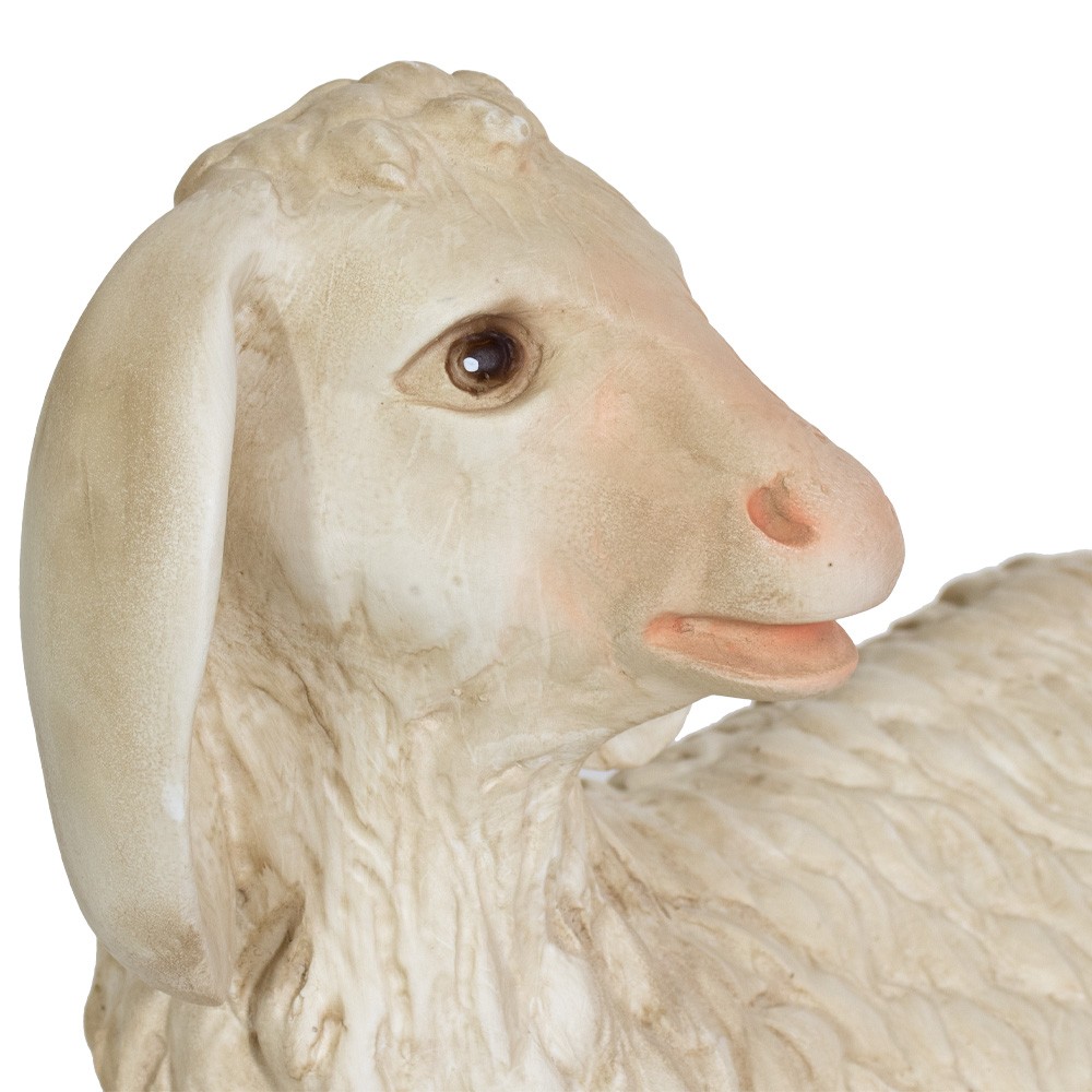 Agnello seduto per il presepe napoletano realizzato in resina vuota e dipinto interamente a mano con colorazione acrilica indelebile.