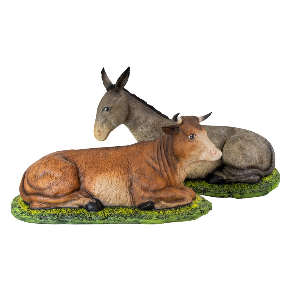 Set composto da bue e asinello proporzionati per la natività del presepe da 160 cm.