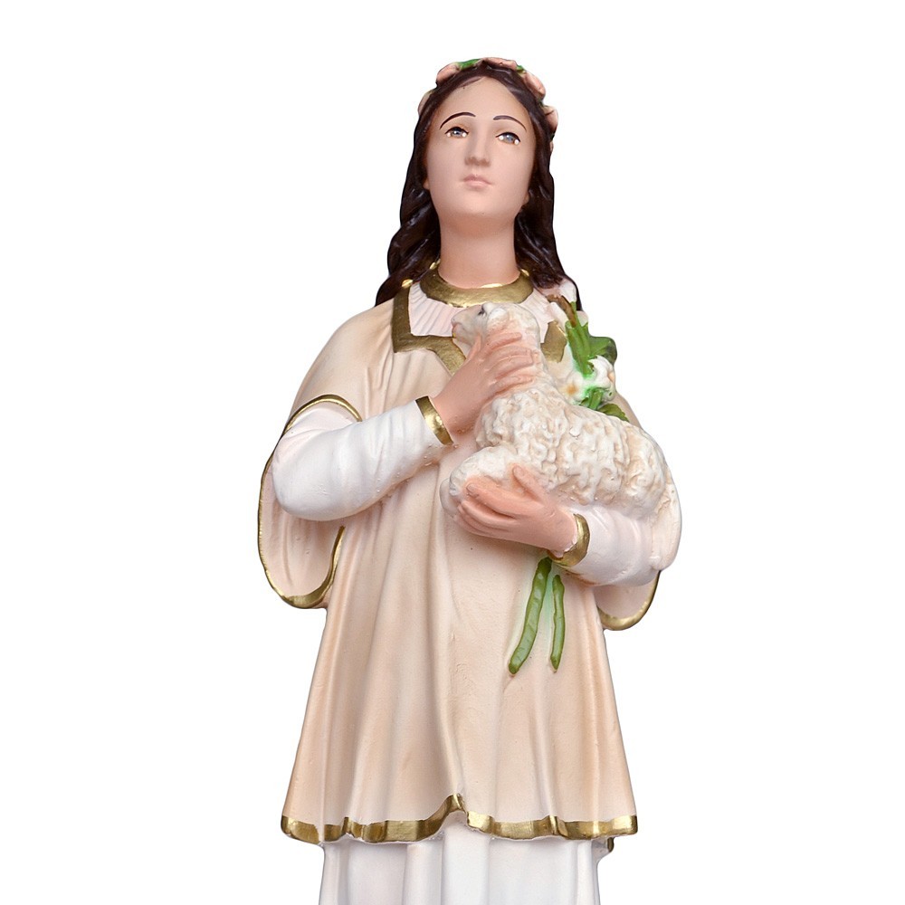 Statua Sant'Agnese alta 40 cm. La statua è realizzata in resina vuota ed è dipinta a mano con colori acrilici e a olio. Ideata e lavorata rigorosamente da un'azienda artigianale italiana. Essendo un prodotto artigianale, ogni pezzo non potrà mai essere uguale all'altro.