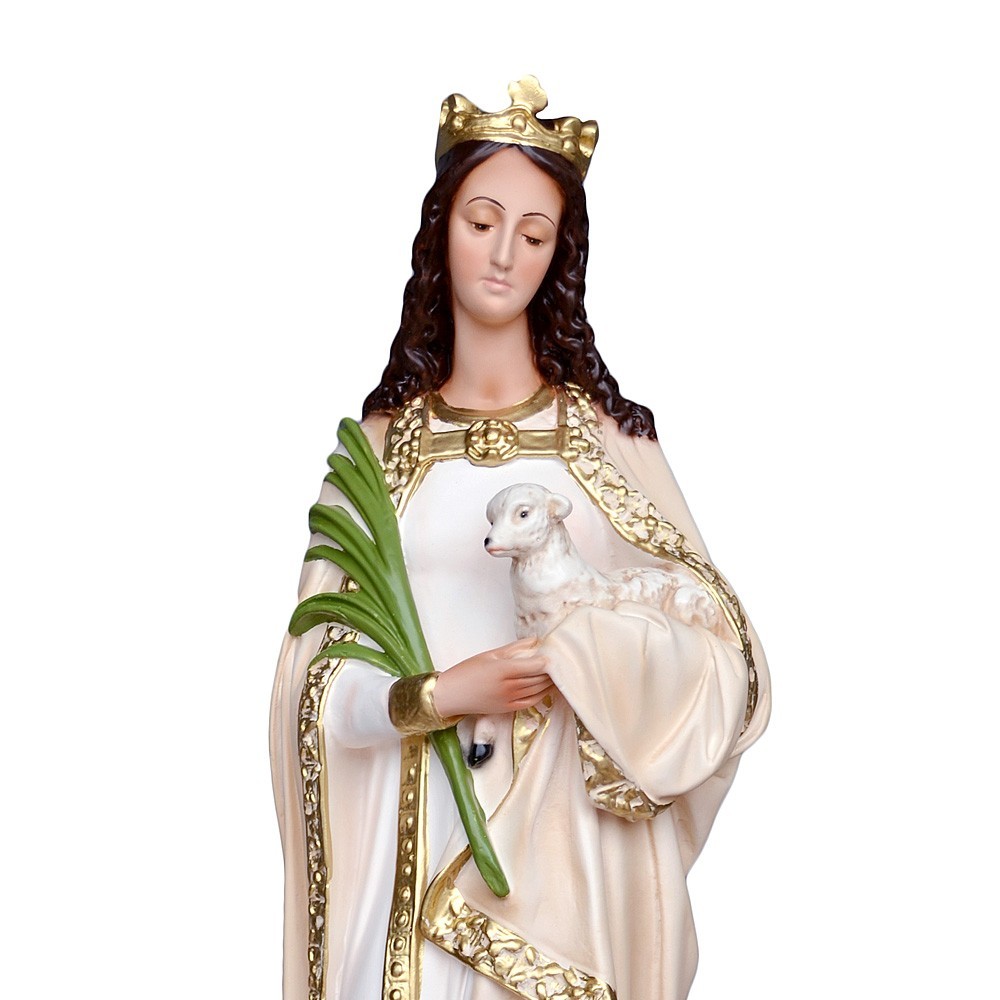 Statua sacra in resina raffigurante Sant'Agnese. La statua è realizzata in resina vuota ed è dipinta a mano con colori acrilici e a olio. Ideata e lavorata rigorosamente da un'azienda artigianale italiana. Essendo un prodotto artigianale, ogni pezzo non potrà mai essere uguale all'altro.