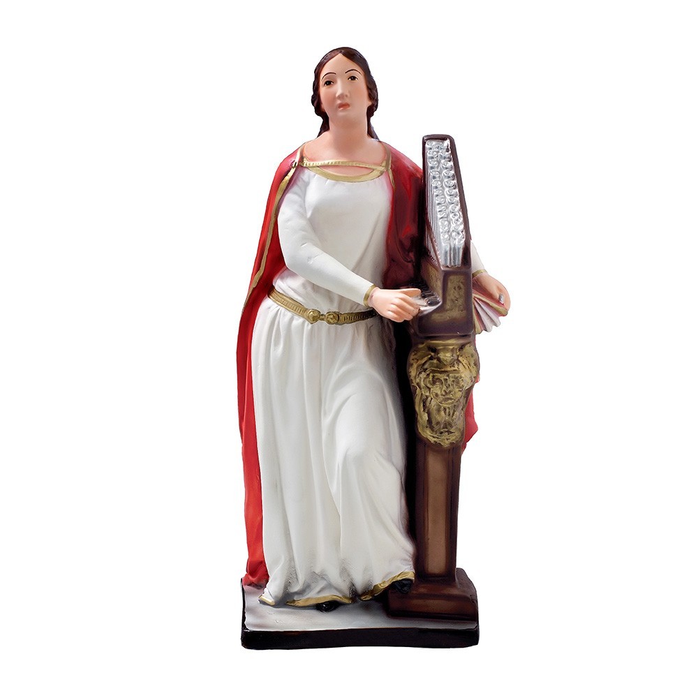 Statua sacra di Santa Cecilia realizzata in resina e dipinta a mano con colori acrilici e a olio rendendo la statua particolarmente bella.