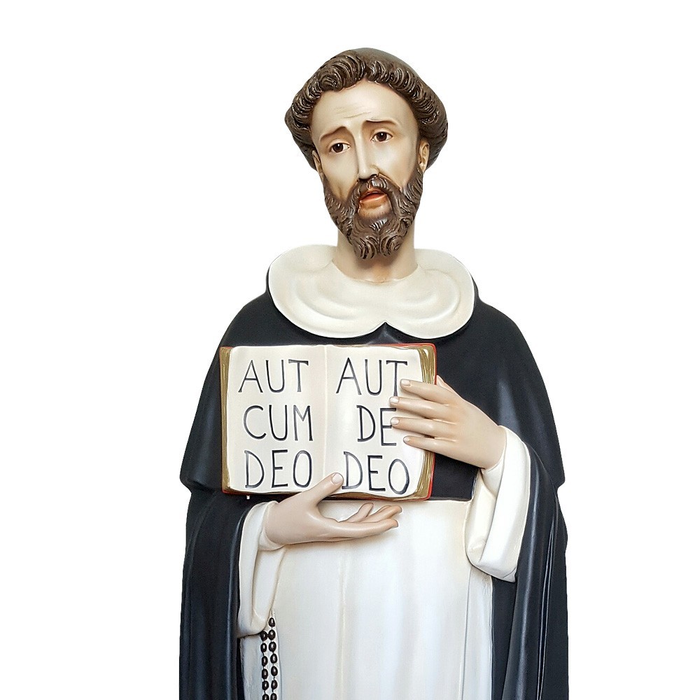 Statua di San Domenico Guzman in vetroreina, h 160 cm.