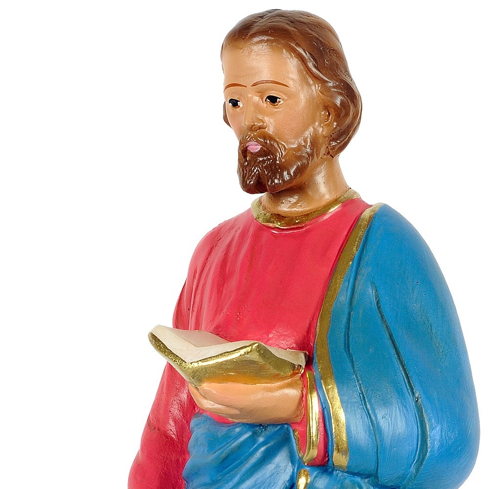 L'altezza della statua è 30 cm ed è realizzata interamente in gesso. La statua è dipinta finemente a mano. Articolo di buona qualità eseguito da un'azienda artigianale italiana, Arte Barsanti specializzata in statue sacre, con un vastissimo assortimento di personaggi per il presepe. La produzione è artigianale, dalla colata di gesso, fino alla decorazione a pennello secondo i metodi tramandati da tre generazioni.