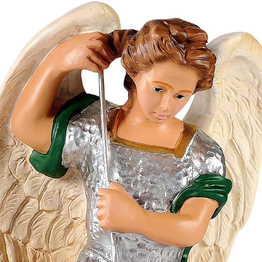 Consegna garantita in 24/48hMini statuetta di San Michele Arcangelo in resina colorata.