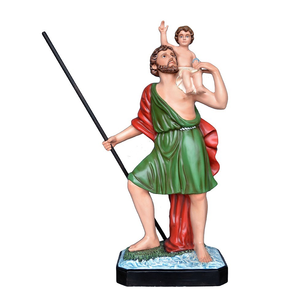 Statua di San Cristoforo alta 120 cm, prodotta e dipinta a mano.