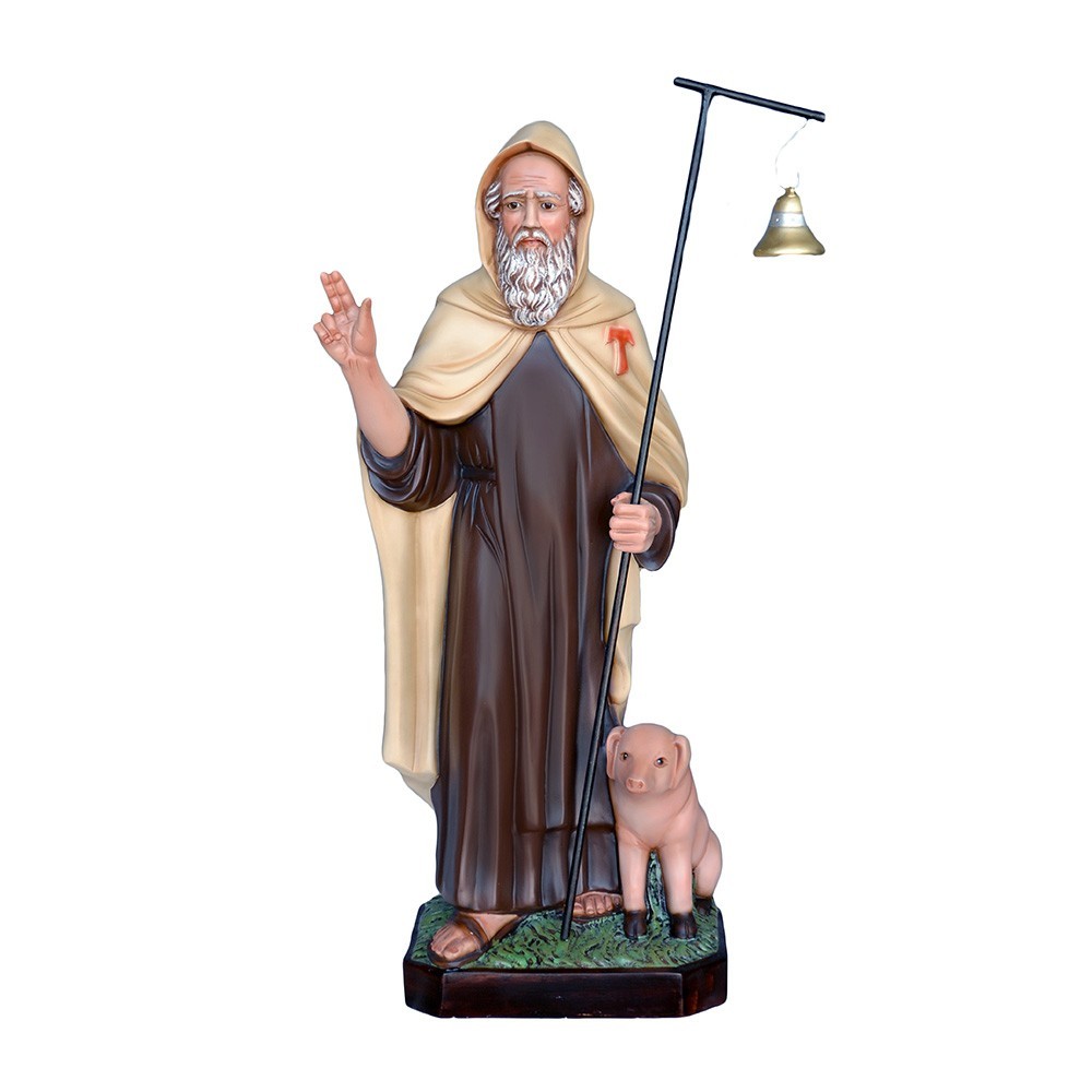 Statua sacra Sant'Antonio Abate in resina vuota. Altezza 80 cm.