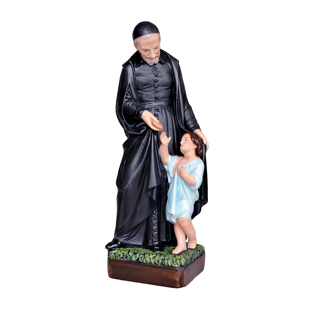 Statua sacra San Vincenzo de Paoli in resina, h 40 cm.