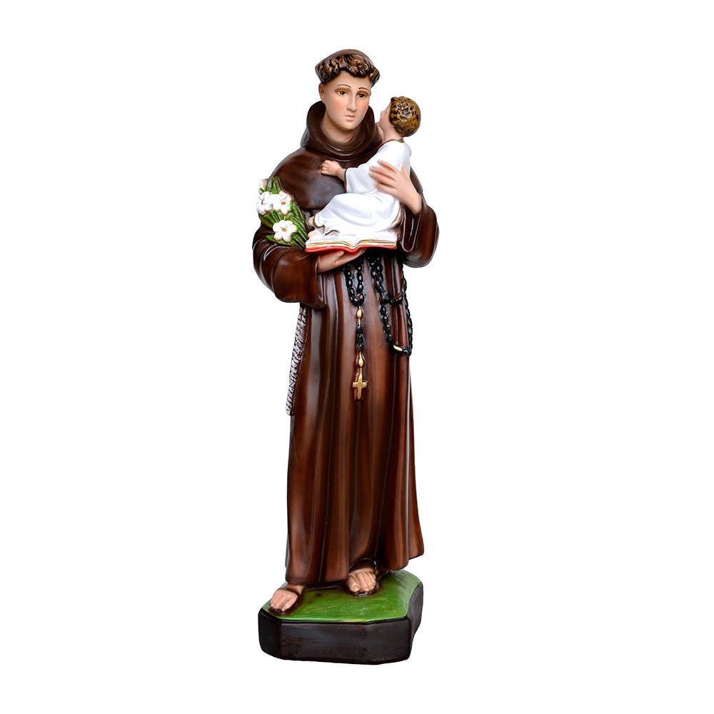Statua sacra Sant'Antonio di Padova prodotta in resina vuota e dipinta a mano con colori acrilici.