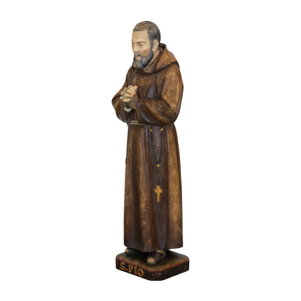 Statua San Pio realizzata in legno, altezza 70 cm.
