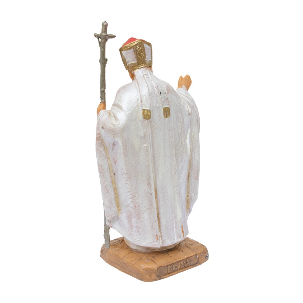 Mini statua di Giovanni Paolo II con casula bianca, alta circa 8 cm.