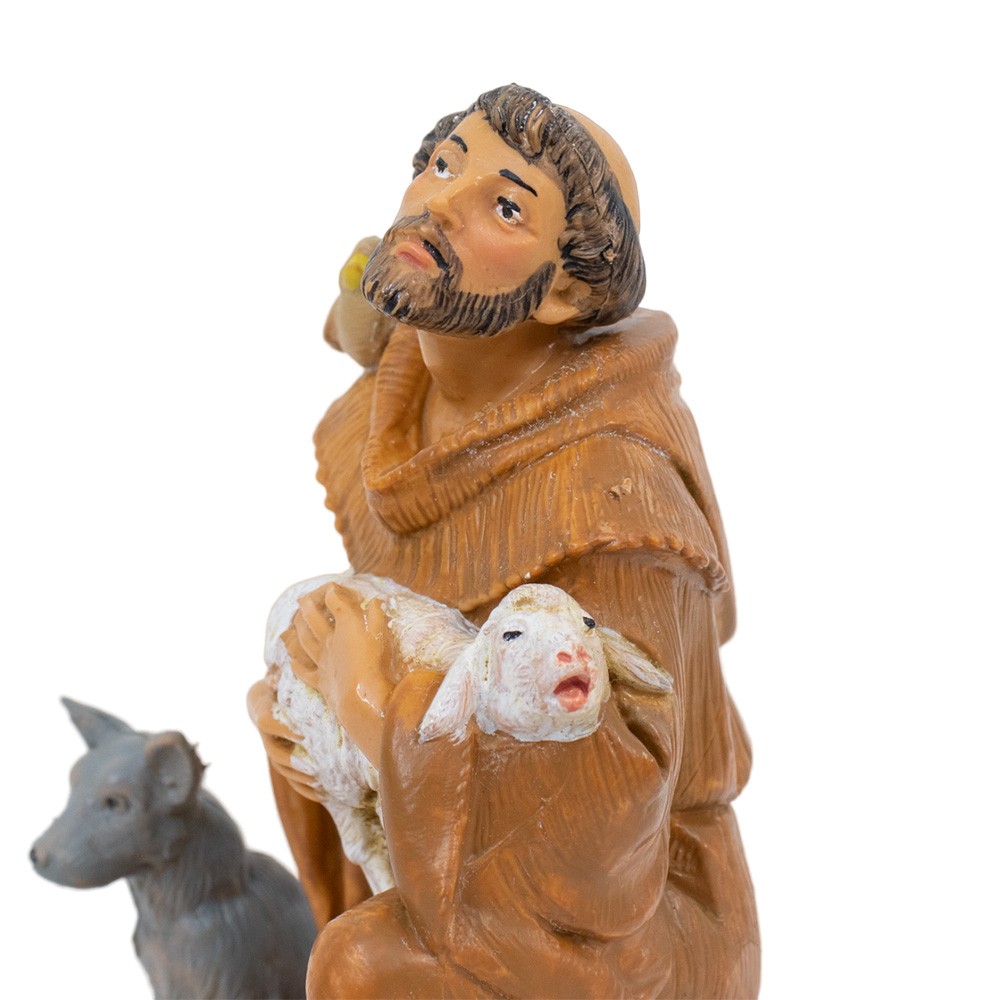 Statua di San Francesco in ginocchio con animali, serie Fontanini.