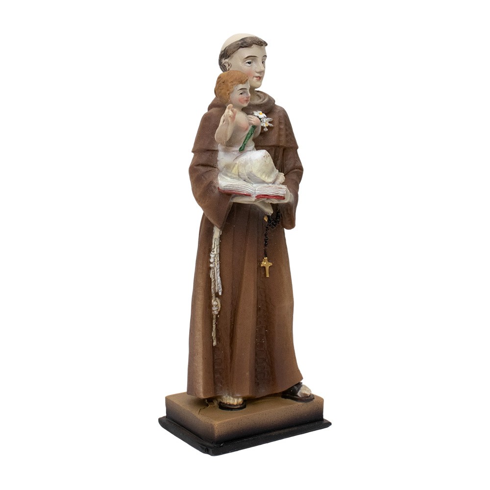 Mini statua Sant'Antonio da Padova in resina colorata.