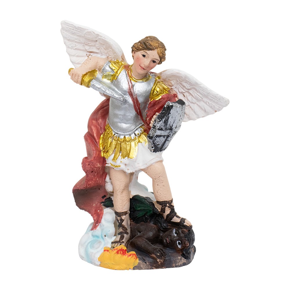 Statua di San Michele Arcangelo alta 8,5 cm, realizzata in resina e dipinta finemente a mano.
