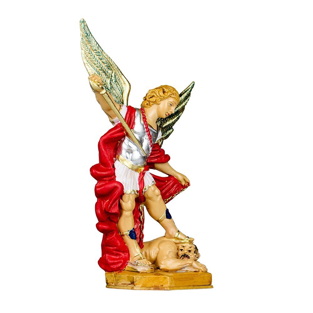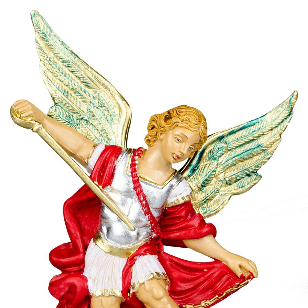Statua San Michele Arcangelo, alta 15 cm, realizzata in PVC e dipinta a mano. Made in Italy.