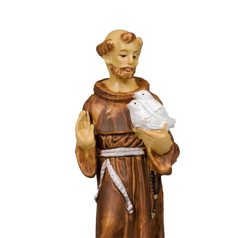 Statua San Francesco realizzata in PVC, materiale leggero e infrangibile. Dipinta a mano. Articolo realizzato interamente da un'azienda italiana.